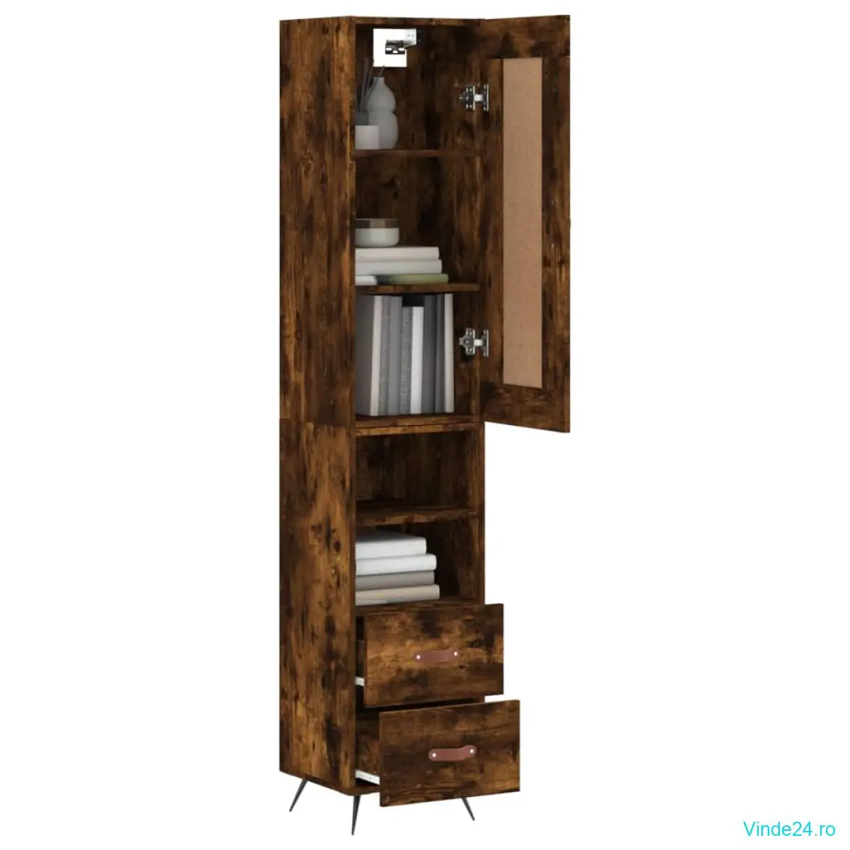 vidaXL Dulap înalt, stejar fumuriu, 34,5x34x180 cm, lemn prelucrat