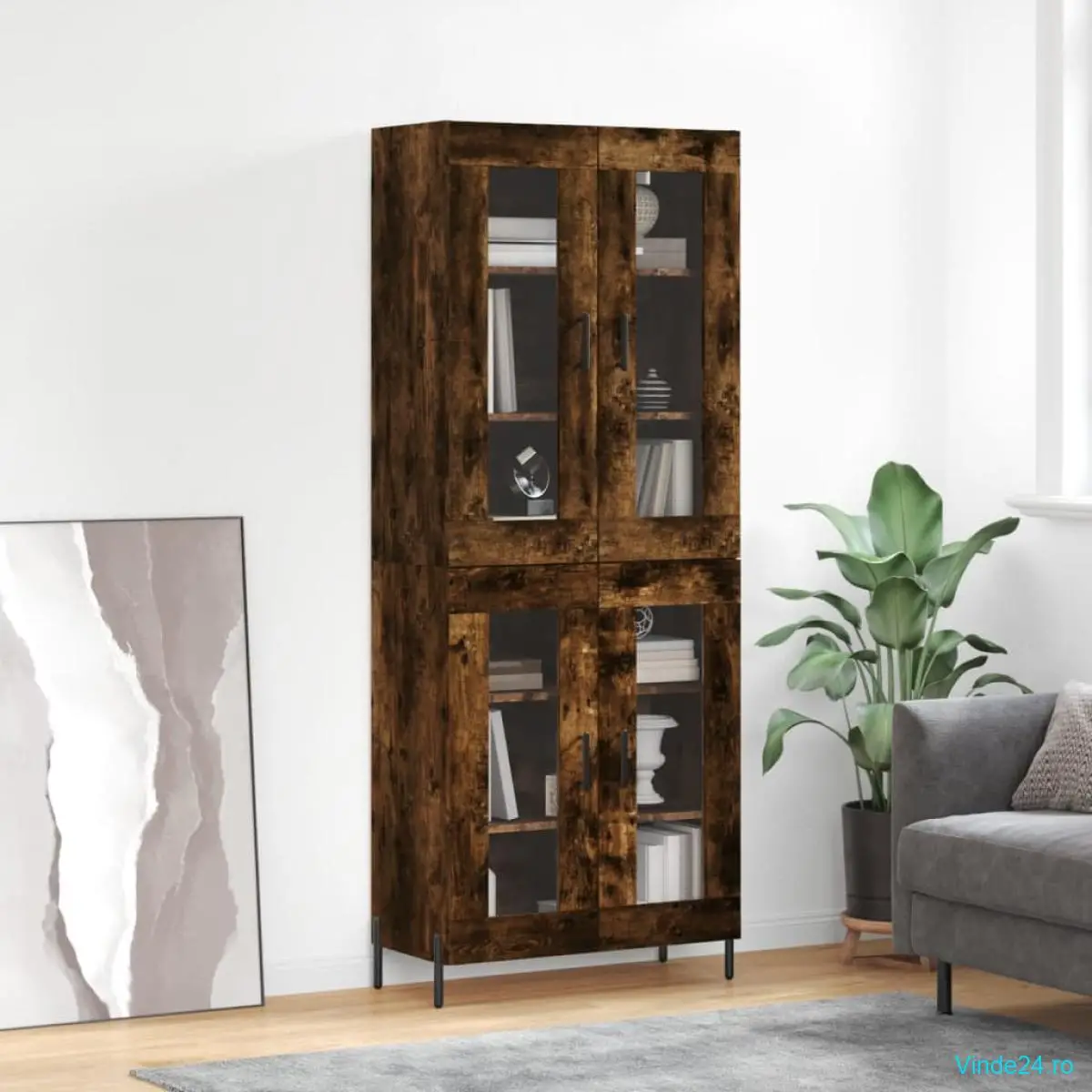 vidaXL Dulap înalt, stejar fumuriu, 69,5x34x180, lemn compozit