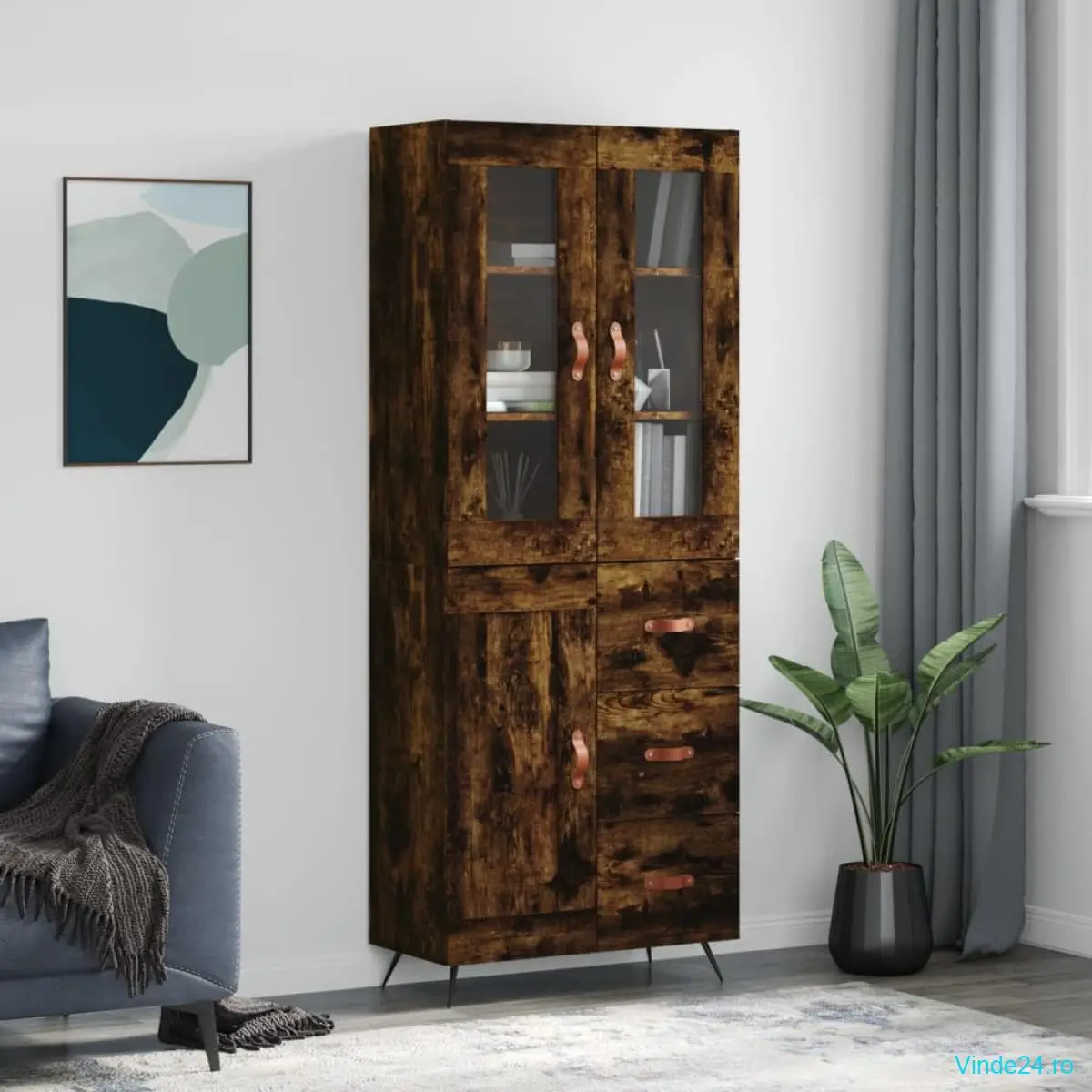 vidaXL Dulap înalt, stejar fumuriu, 69,5x34x180, lemn compozit