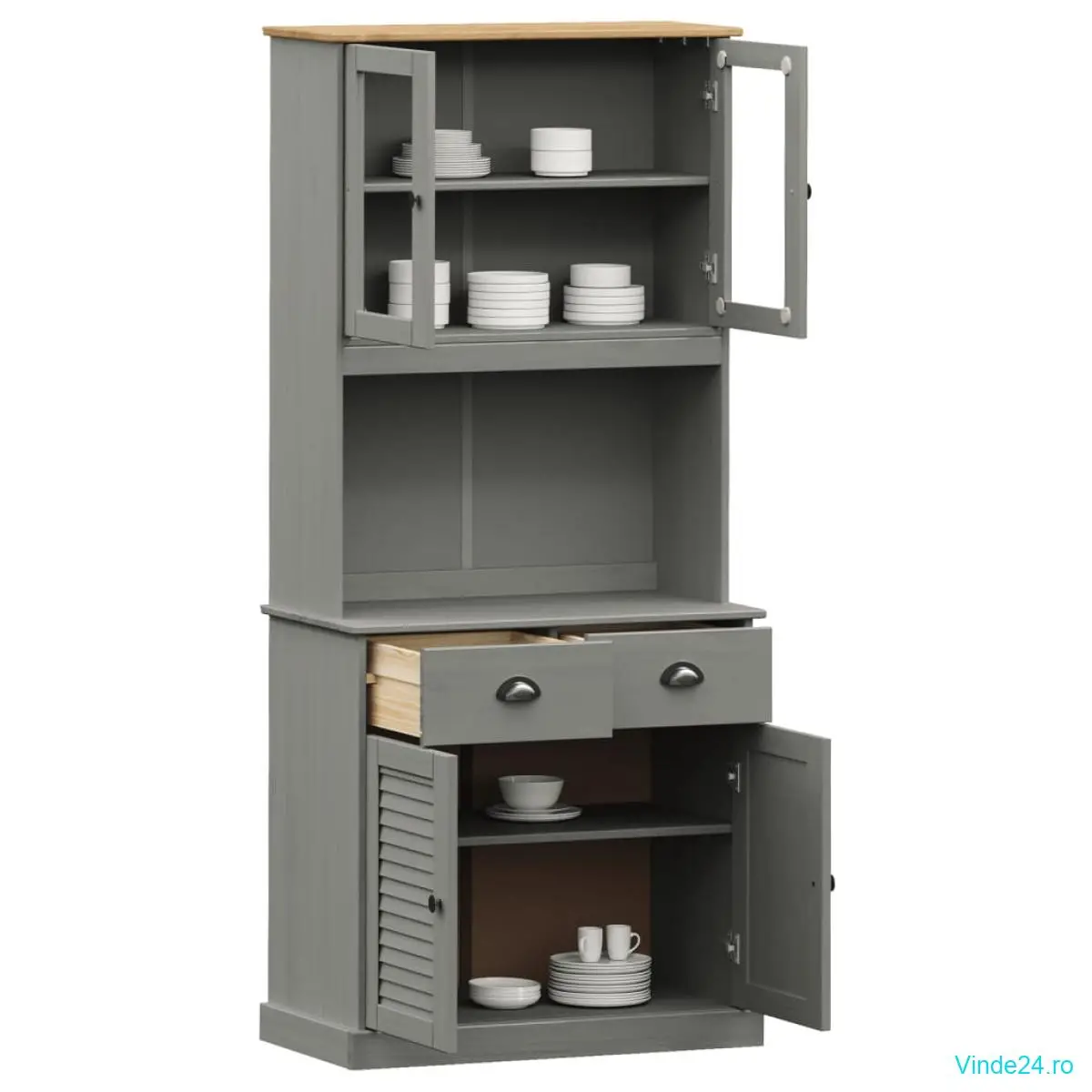 • Spațiu amplu de depozitare: Dulapul are sertare și compartimente, oferind spațiu amplu pentru a vă păstra în ordine colecția de cești, vase și obiecte decorative mici.