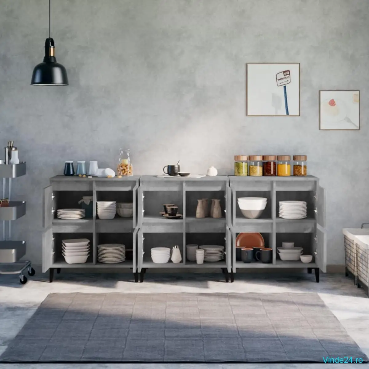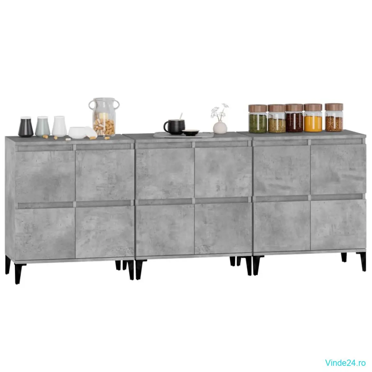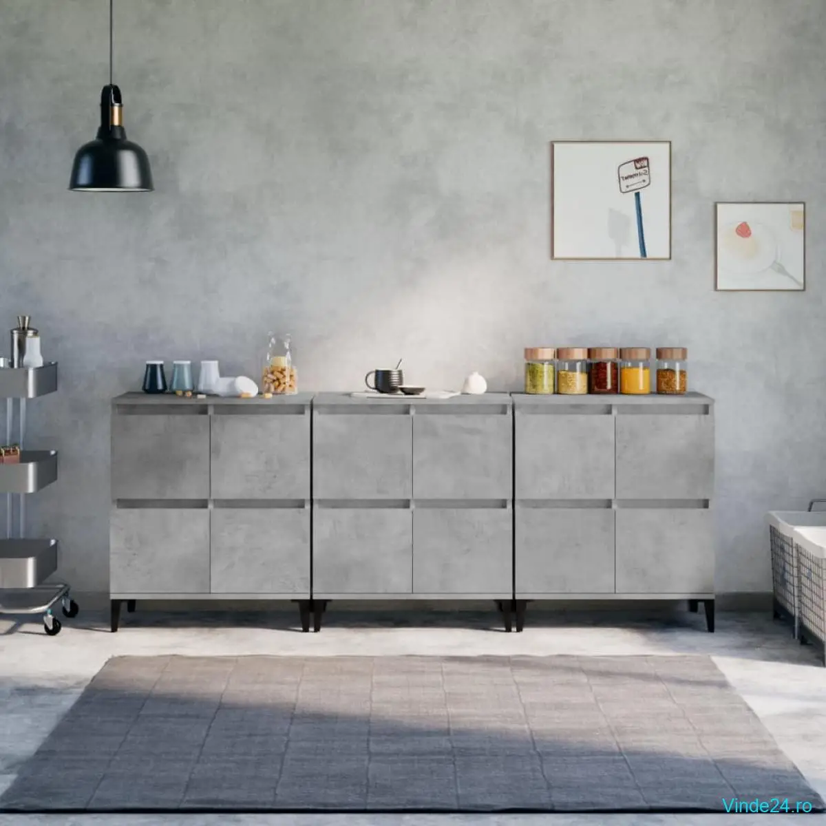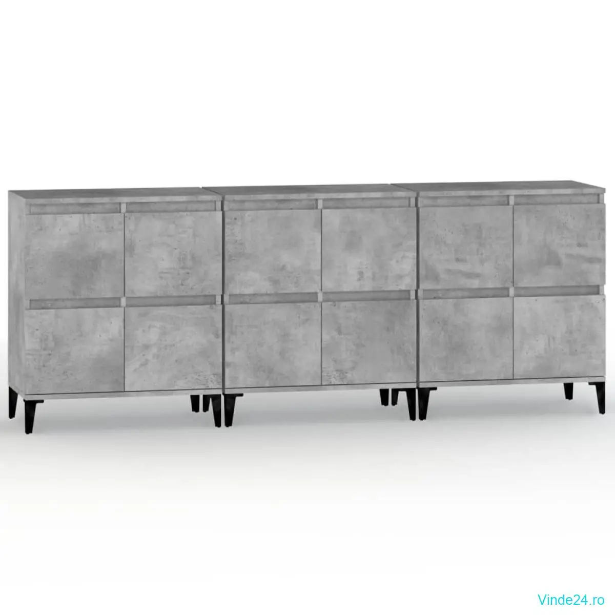 vidaXL Dulapuri, 3 buc, gri beton, 60x35x70 cm, lemn prelucrat