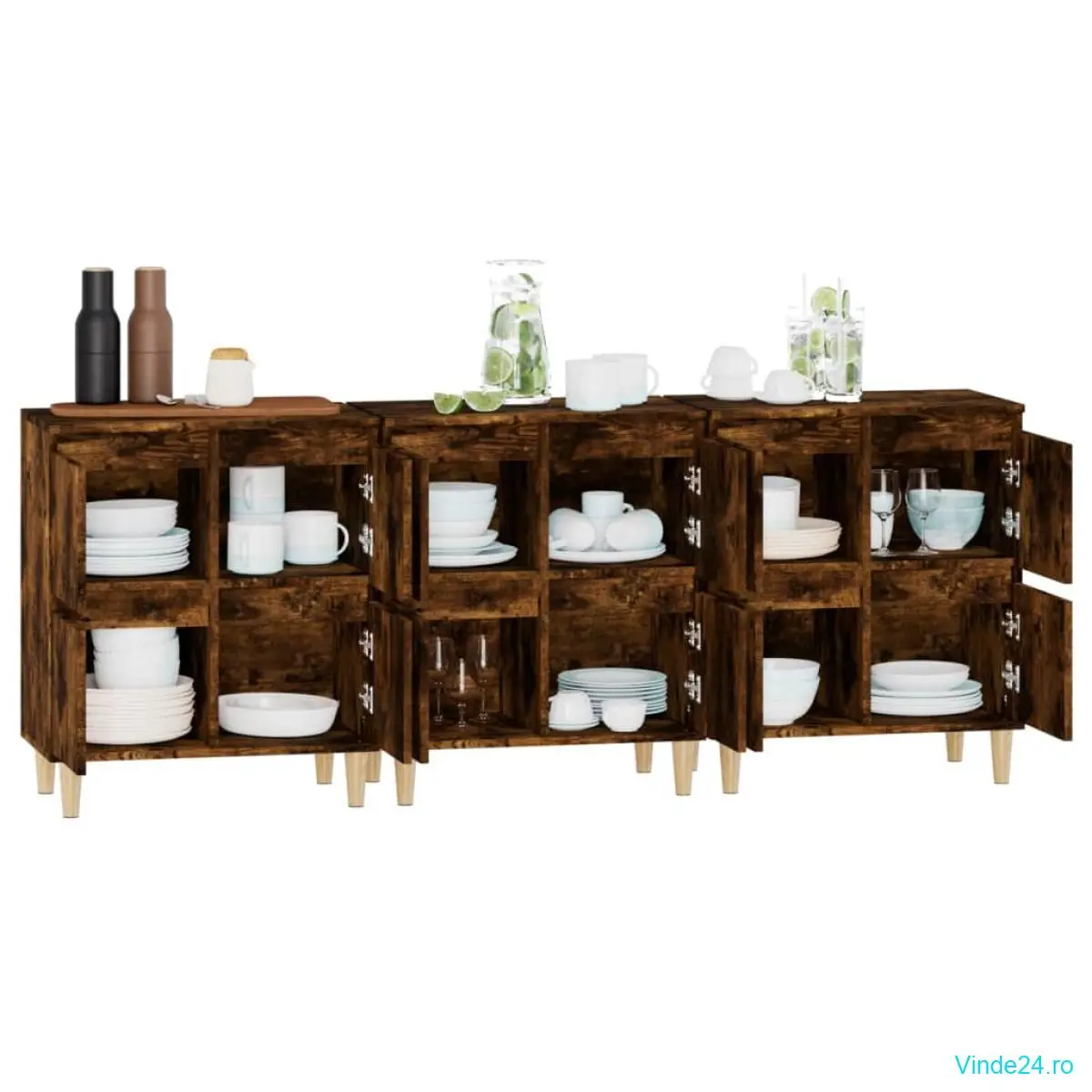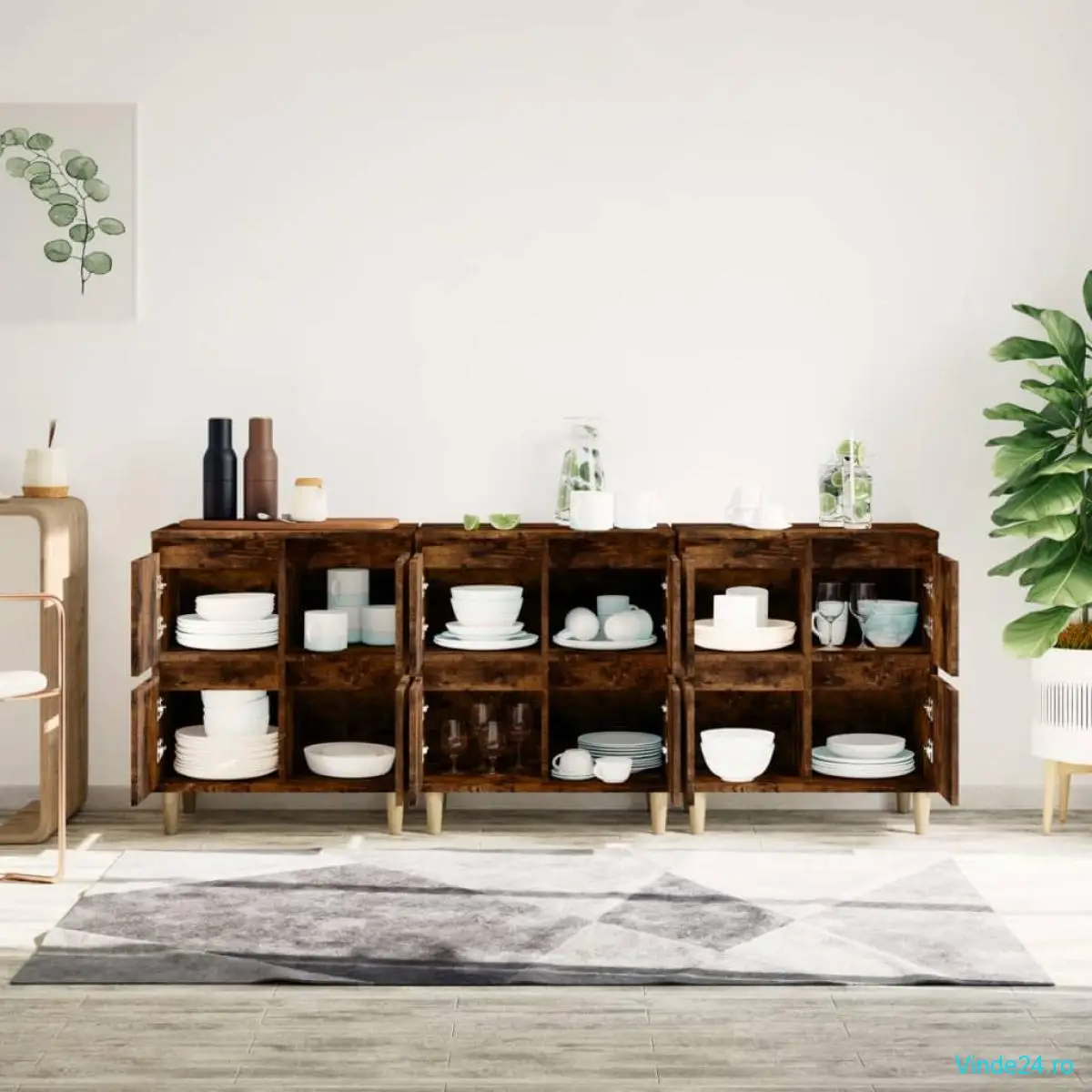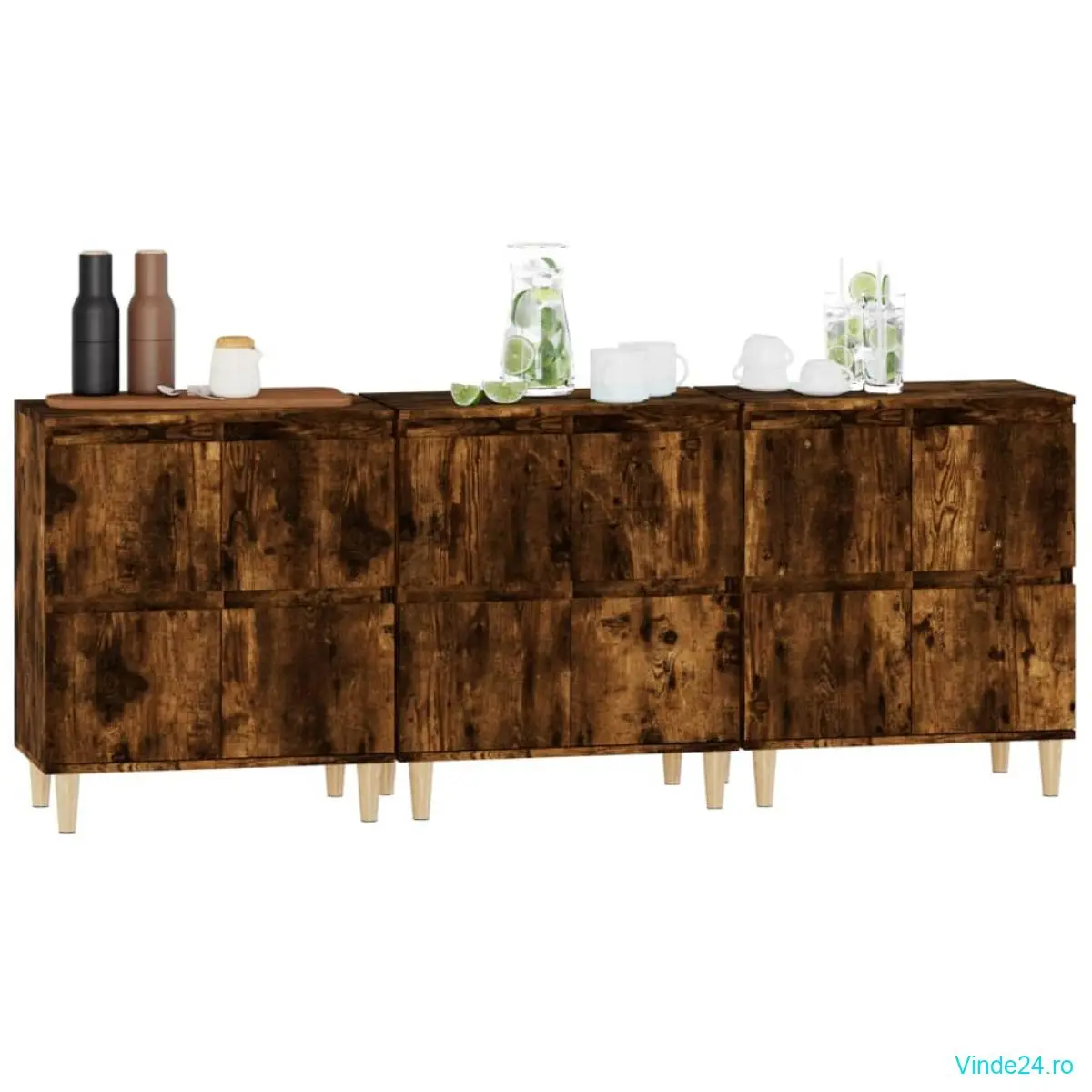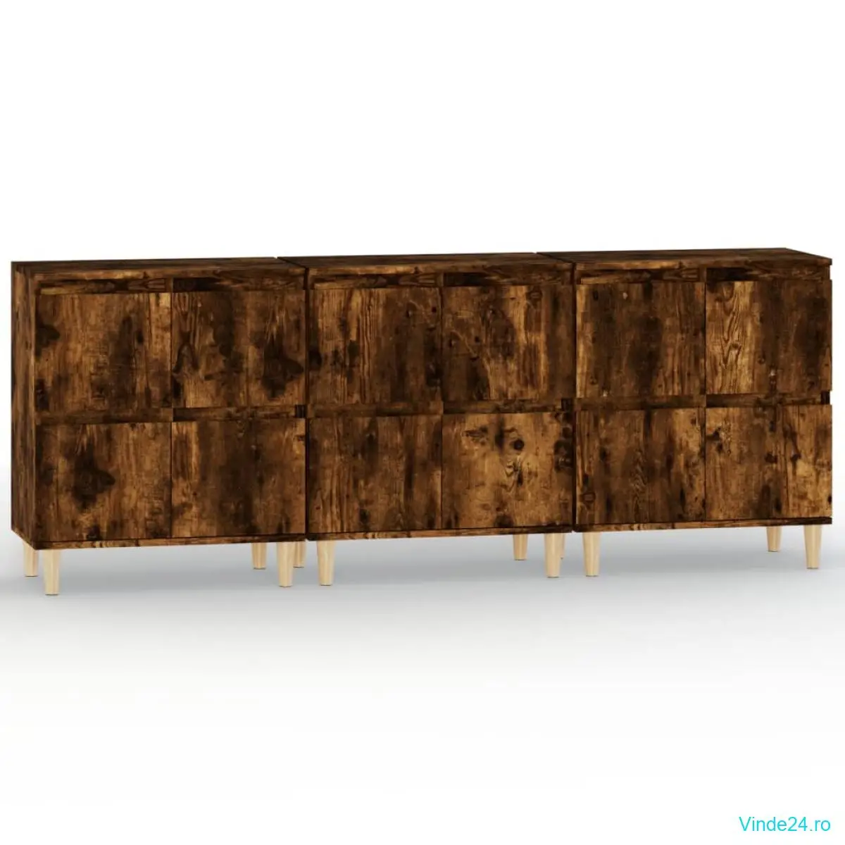 vidaXL Dulapuri, 3 buc, stejar afumat, 60x35x70 cm, lemn prelucrat