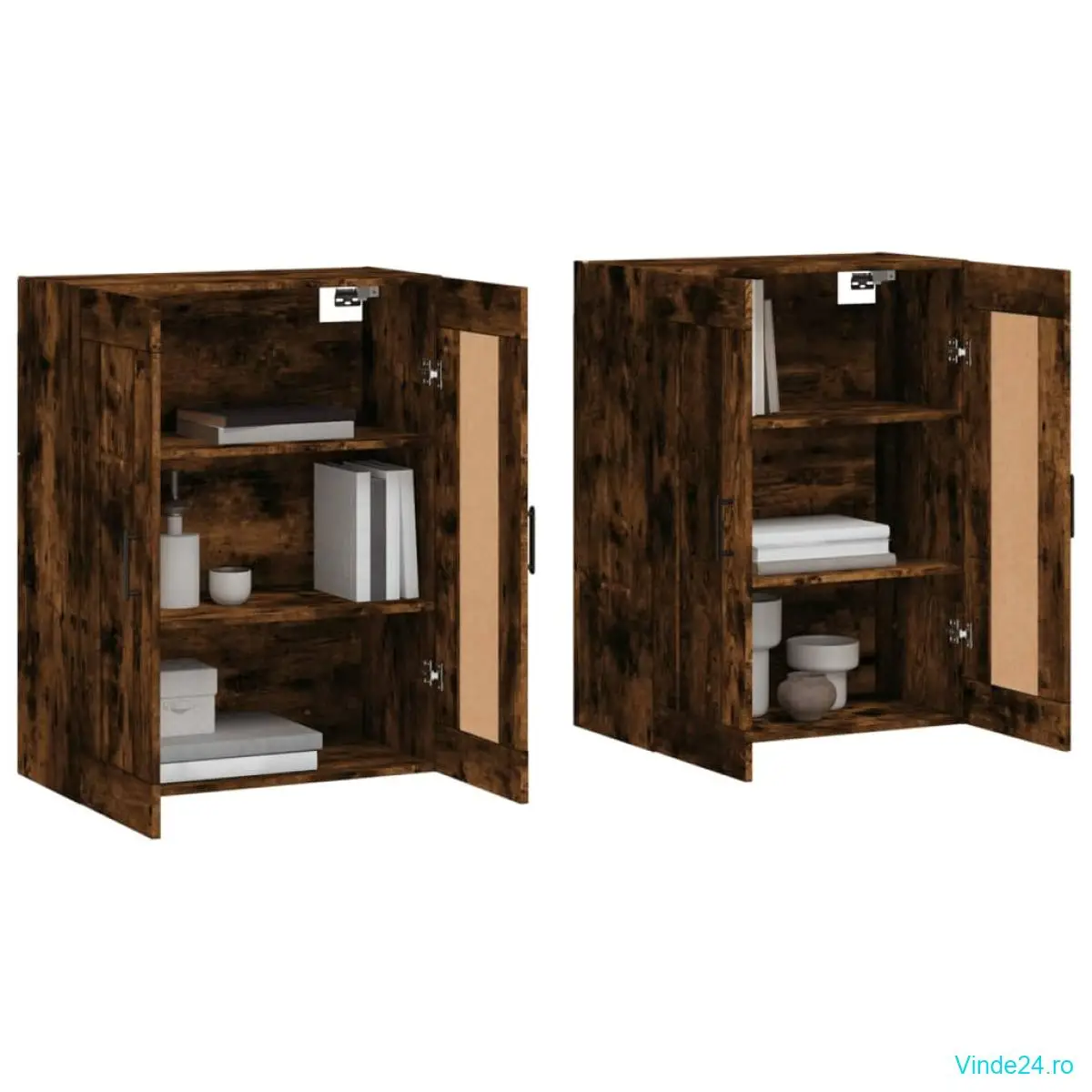 vidaXL Dulapuri de perete, 2 buc., stejar afumat, lemn prelucrat