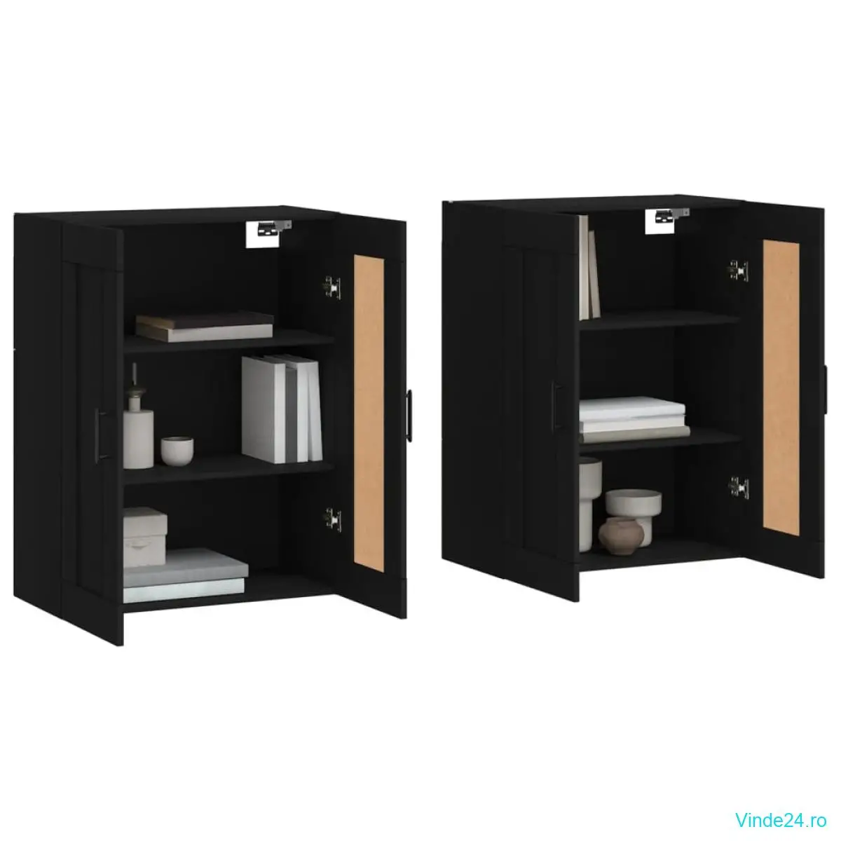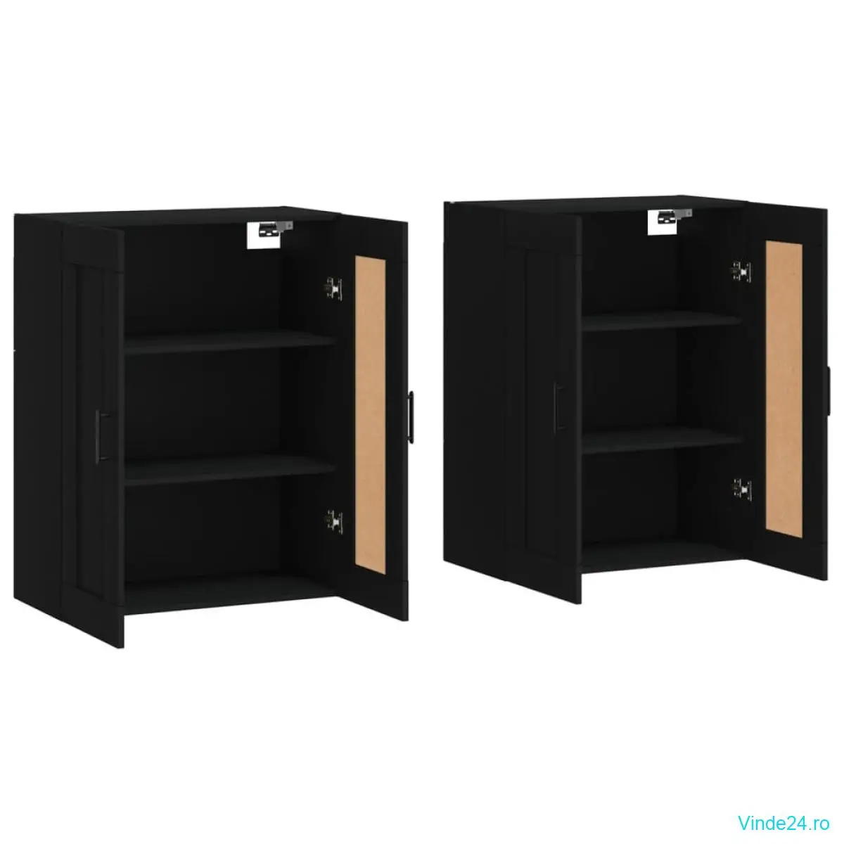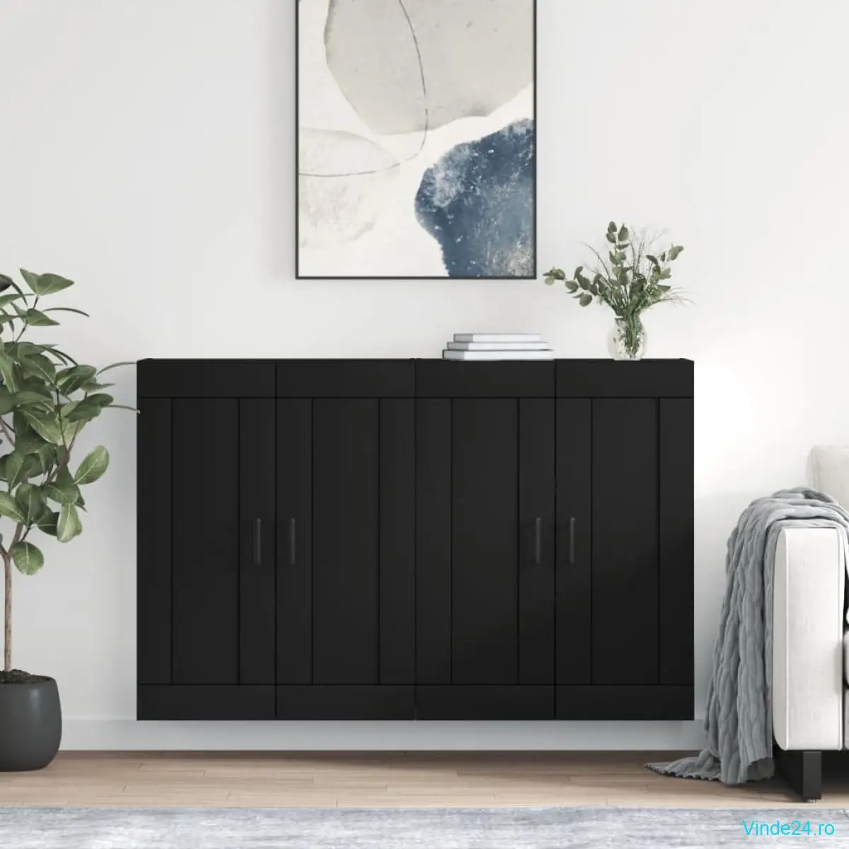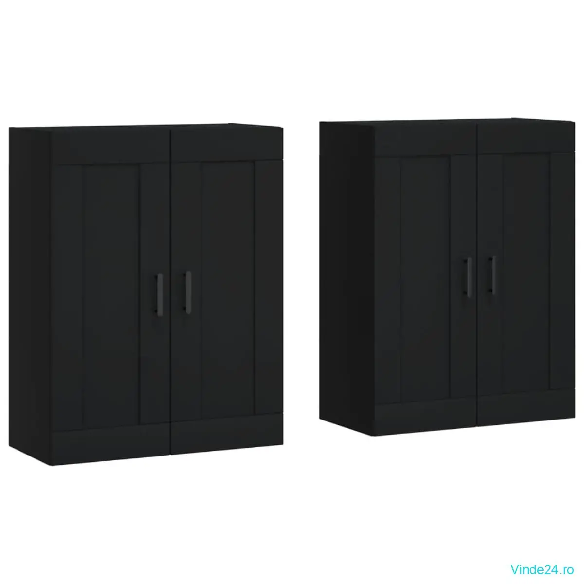 vidaXL Dulapuri montate pe perete, 2 buc, negru, lemn prelucrat