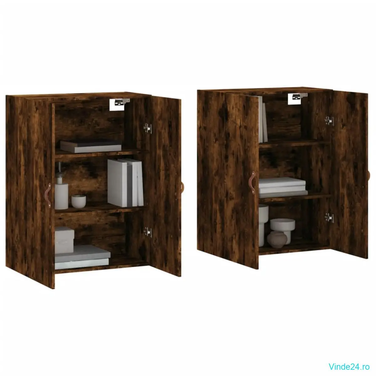 vidaXL Dulapuri montate pe perete, 2 buc, stejar afumat, 69,5x34x90 cm