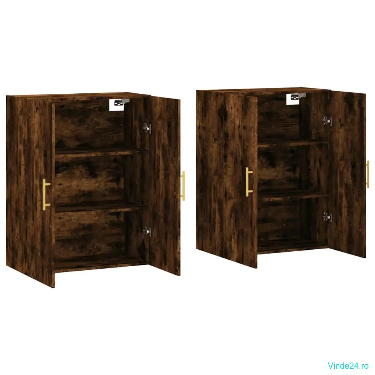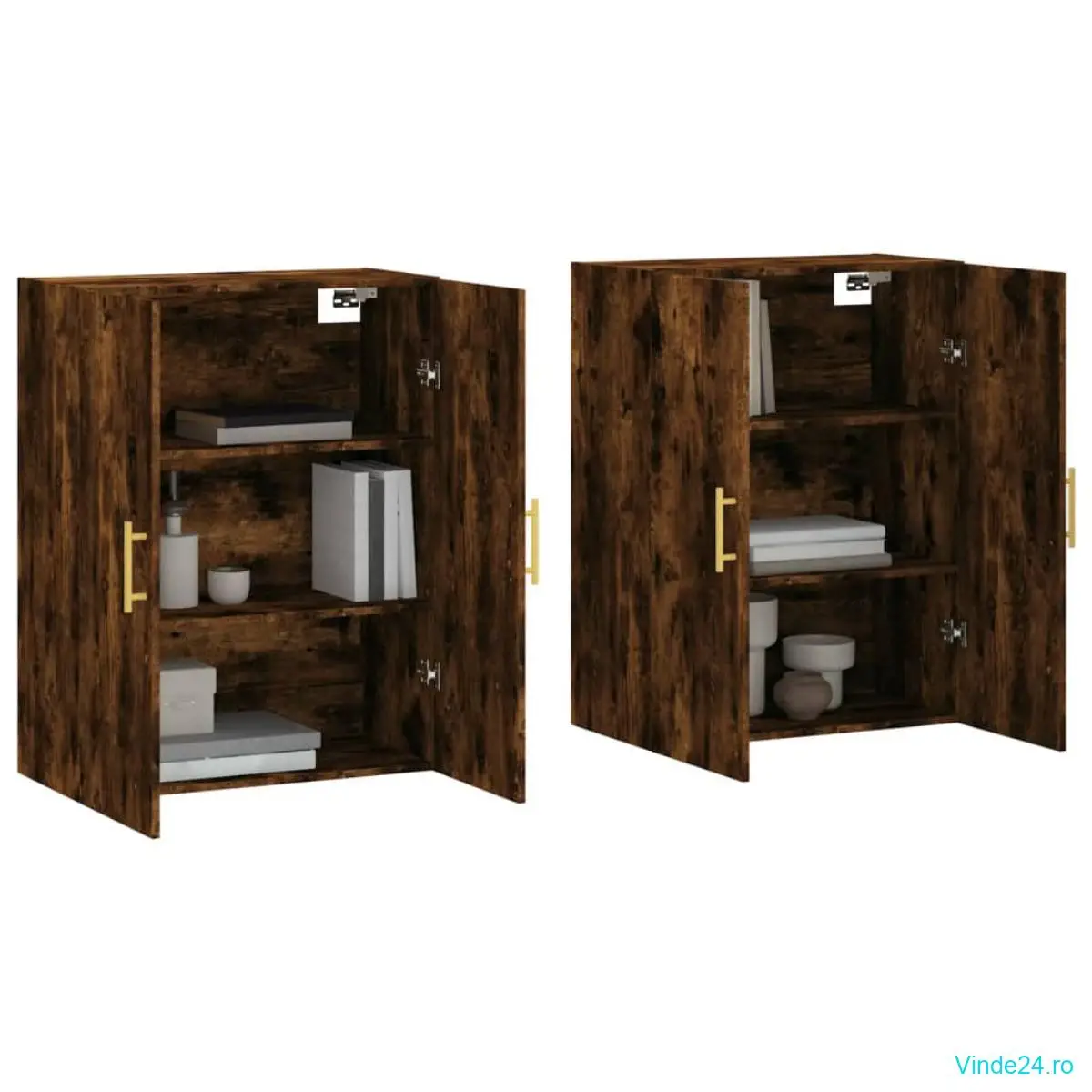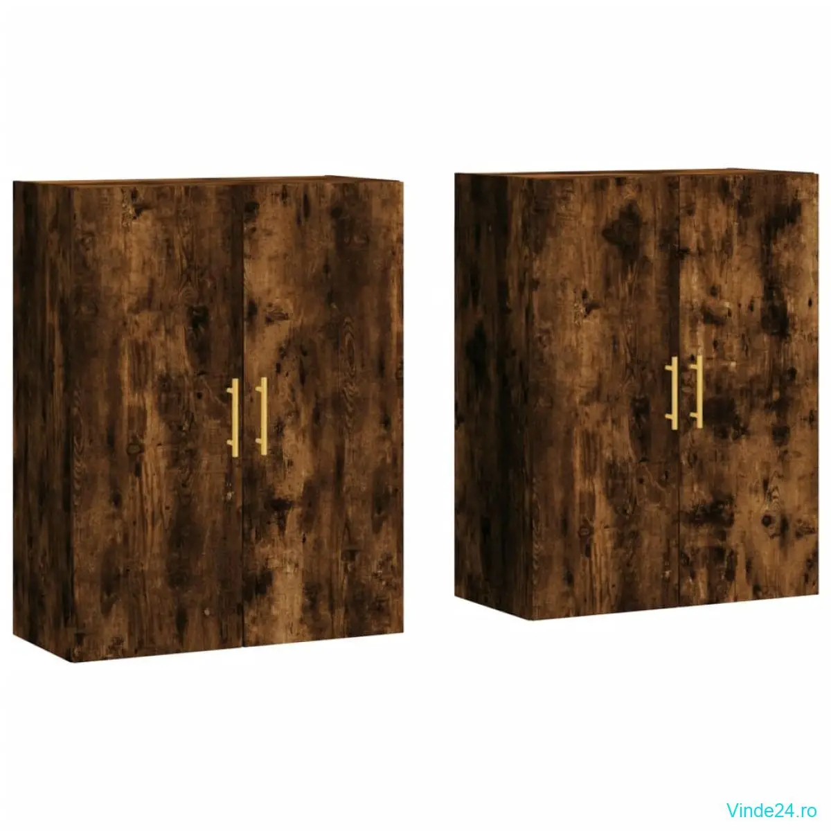 vidaXL Dulapuri montate pe perete, 2 buc, stejar afumat, 69,5x34x90 cm