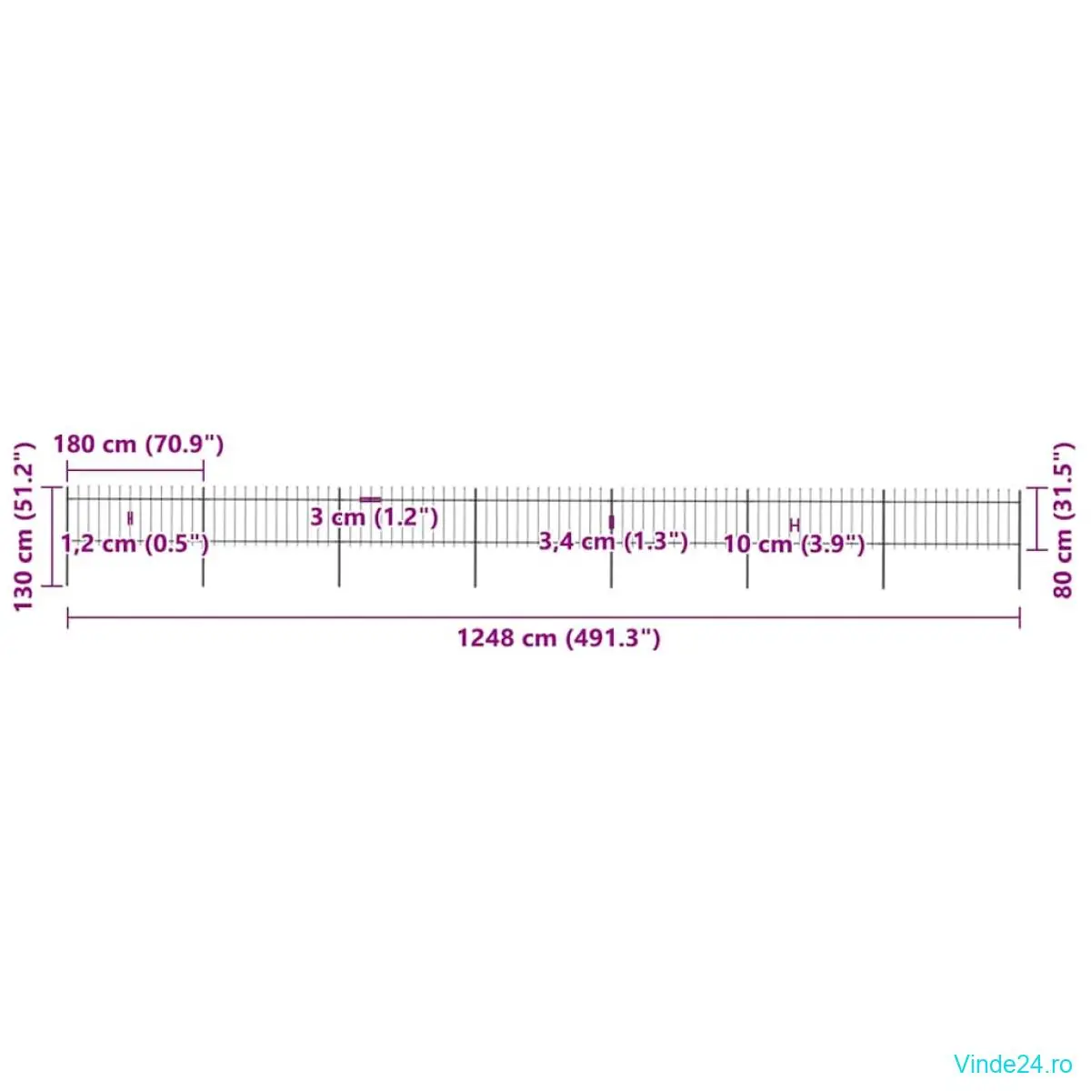 vidaXL Gard de grădină cu vârf suliță, negru, 11,9 m, oțel