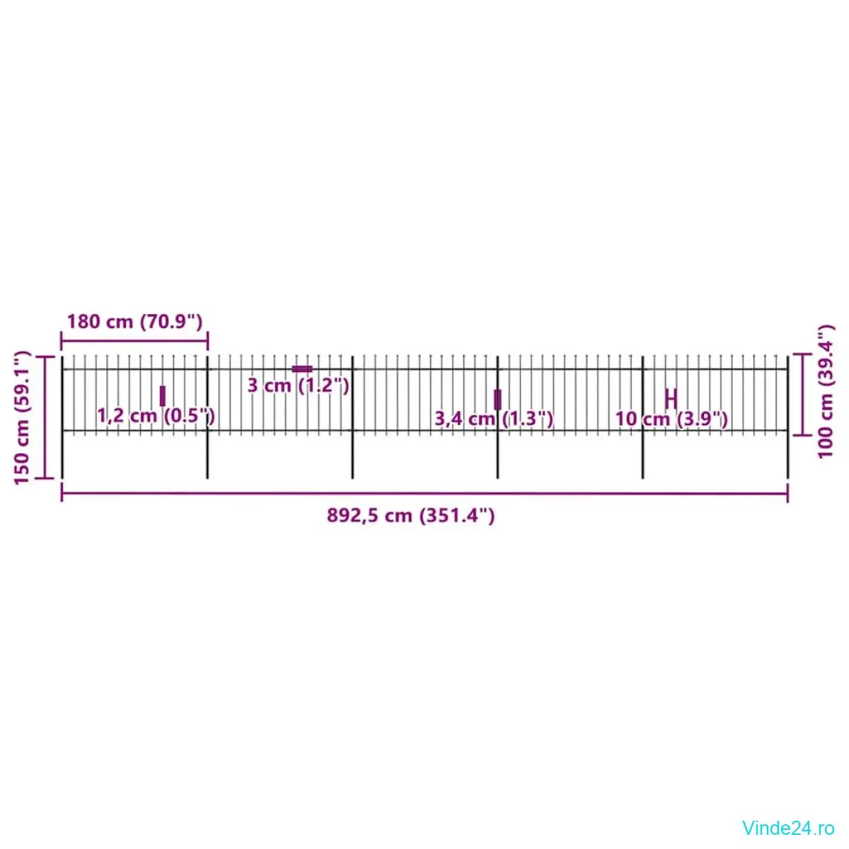 Notă: Puteți cumpăra mai multe seturi pentru a configura gardul la lungimea dorită.