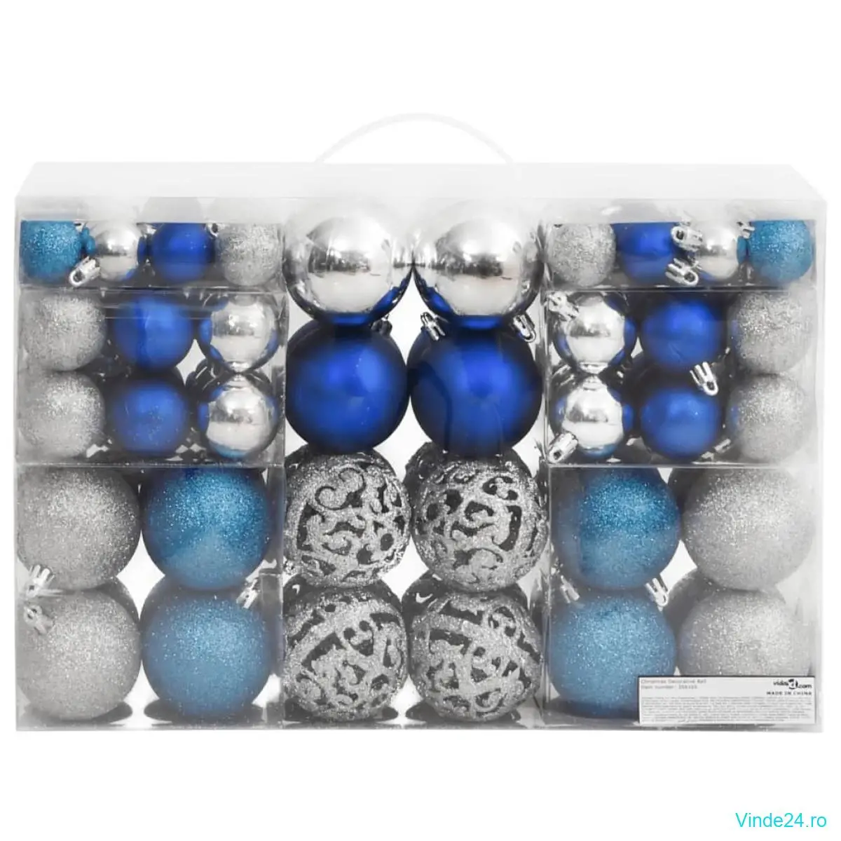 vidaXL Globuri de Crăciun 100 buc., albastru și argintiu, 3 / 4 / 6 cm