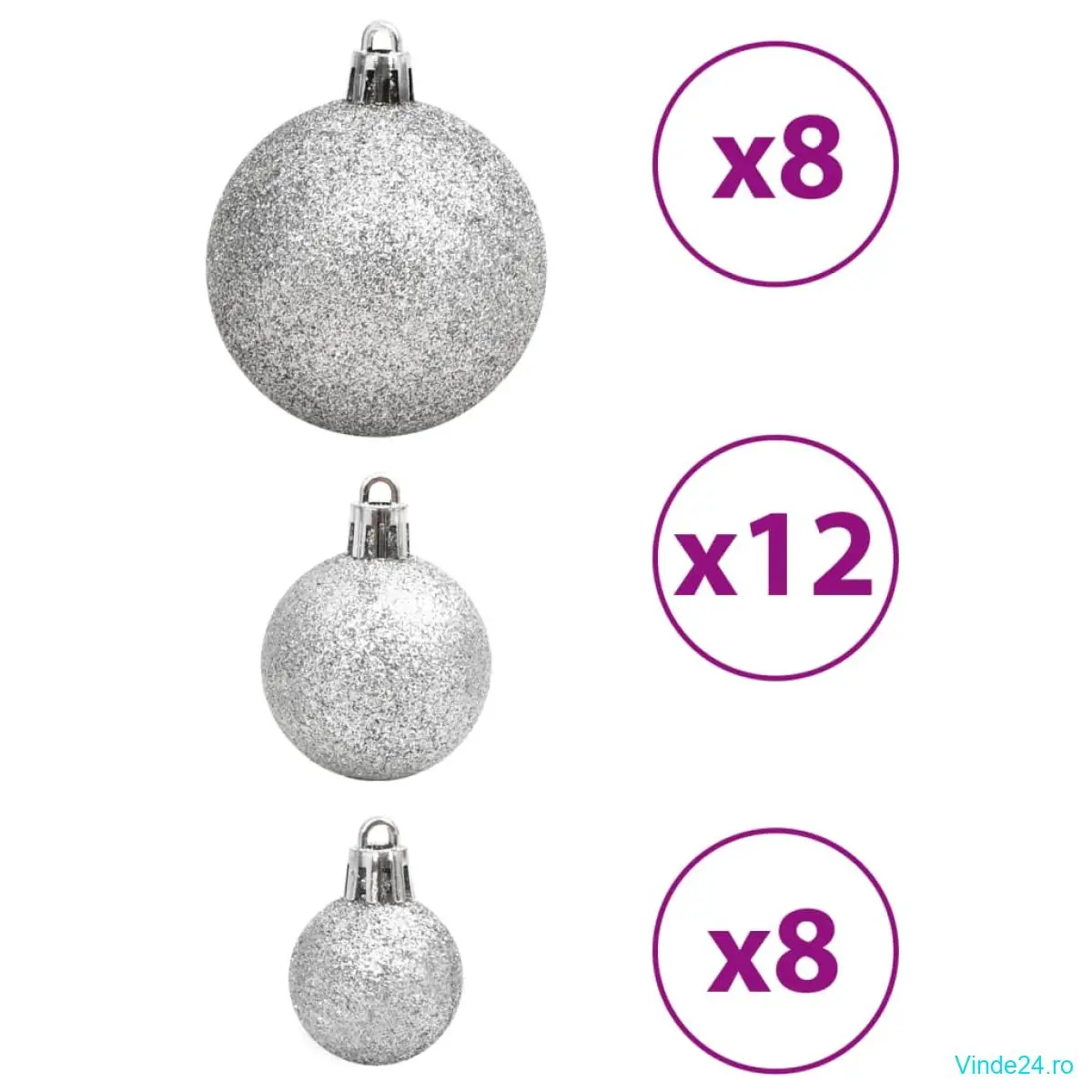 • Diverse stiluri și dimensiuni: Această colecție de globuri de Crăciun include bile în trei diametre (3 cm, 4 cm și 6 cm) și patru stiluri (mat, sclipici, lucios și ajurat).