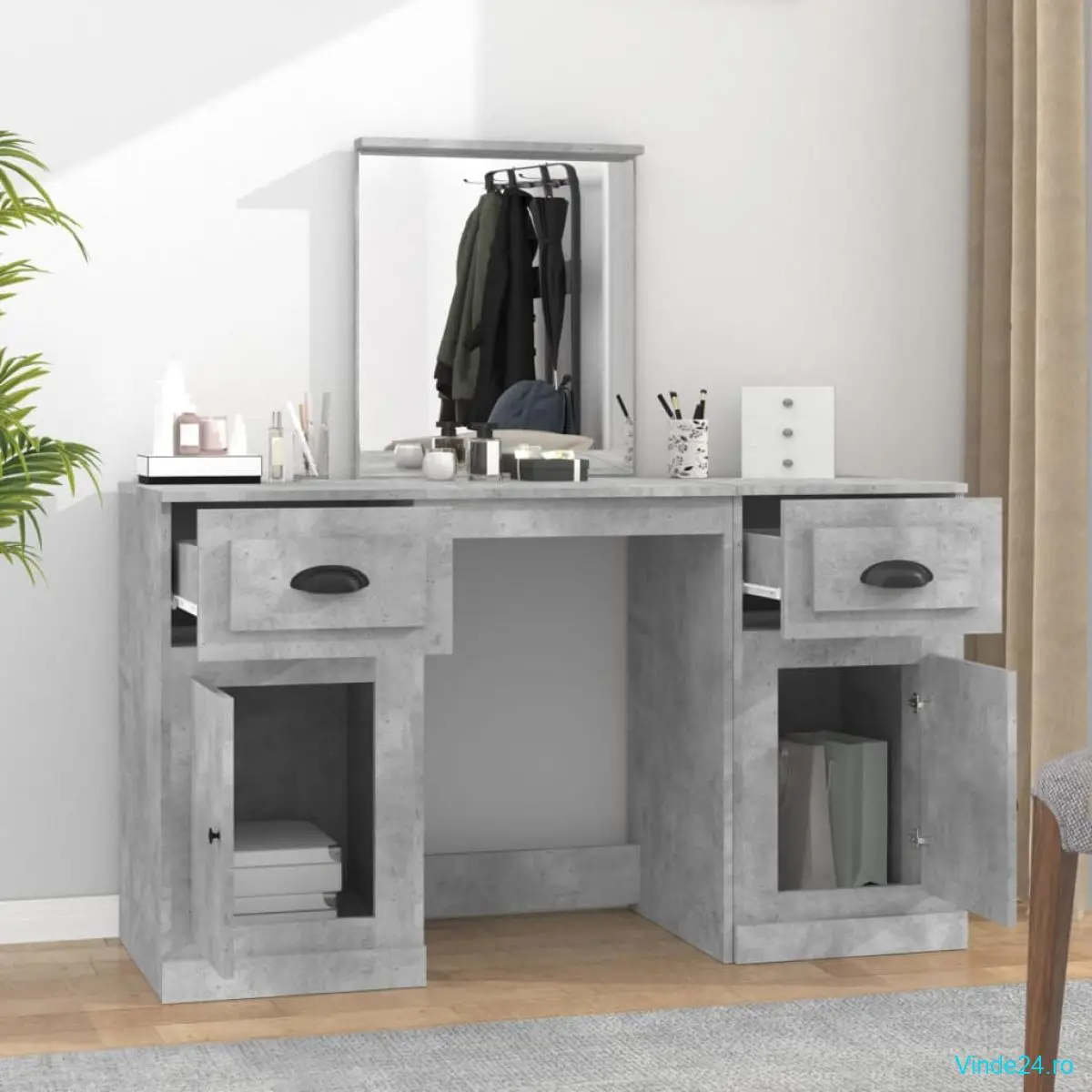- Spațiu amplu de depozitare: Măsuța de toaletă pentru machiaj oferă spațiu amplu pentru un acces ușor la machiaj, bijuterii și la articolele esențiale de zi cu zi.