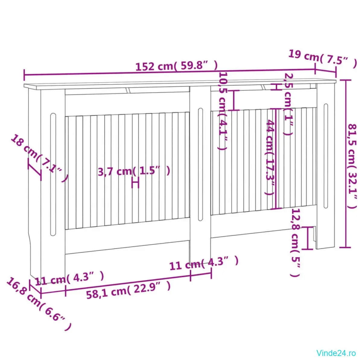 Este proiectată pentru a oferi caloriferului dvs. o funcție decorativă și un spațiu suplimentar de raft pentru rame foto, cărți, obiecte de decor etc. Fabricat din MDF de calitate superioară, dulapul mască de calorifer este robust și durabil. Dulapul mască de calorifer are un design modern, cu șipci, care se potrivește în orice decor de interior și este foarte ușor de asamblat.