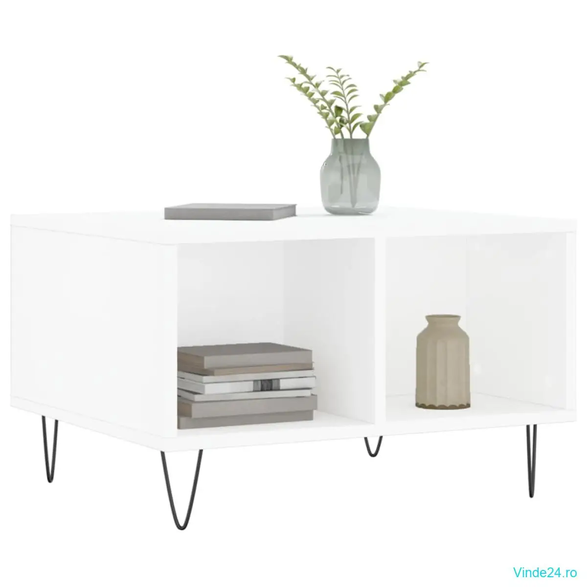vidaXL Măsuță de cafea, alb, 60x50x36,5 cm, lemn compozit