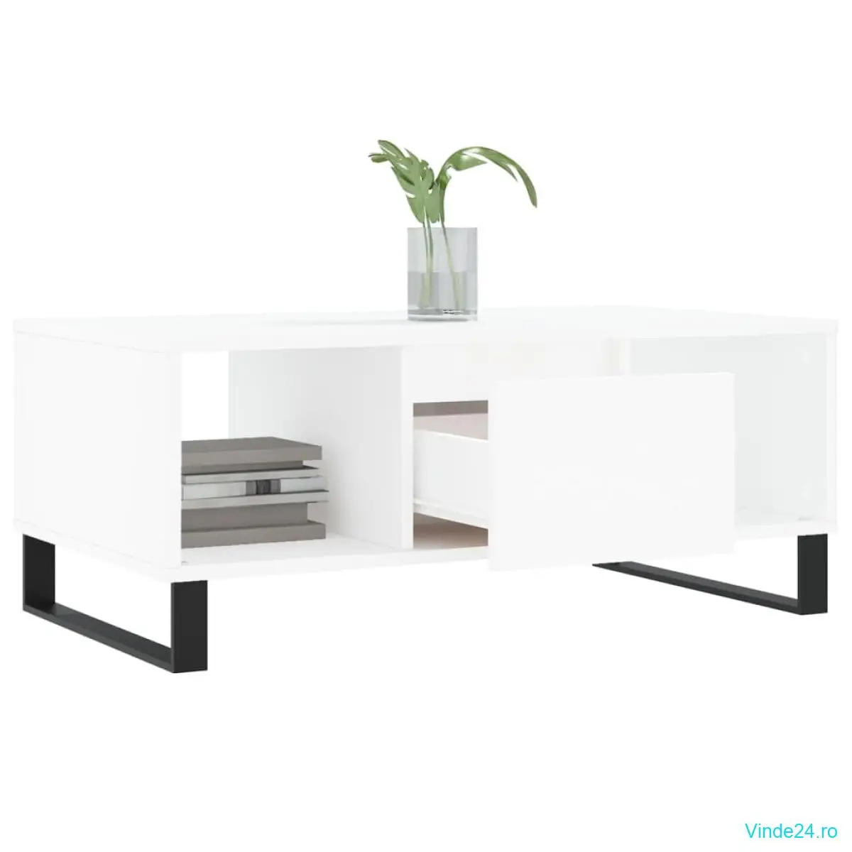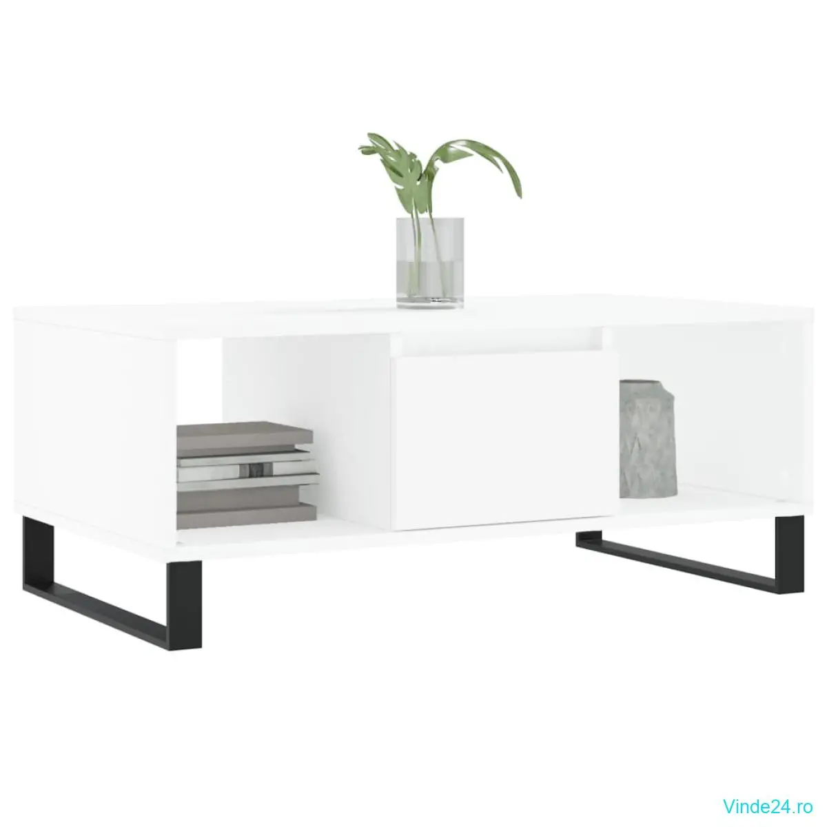 vidaXL Măsuță de cafea, alb, 90x50x36,5 cm, lemn prelucrat