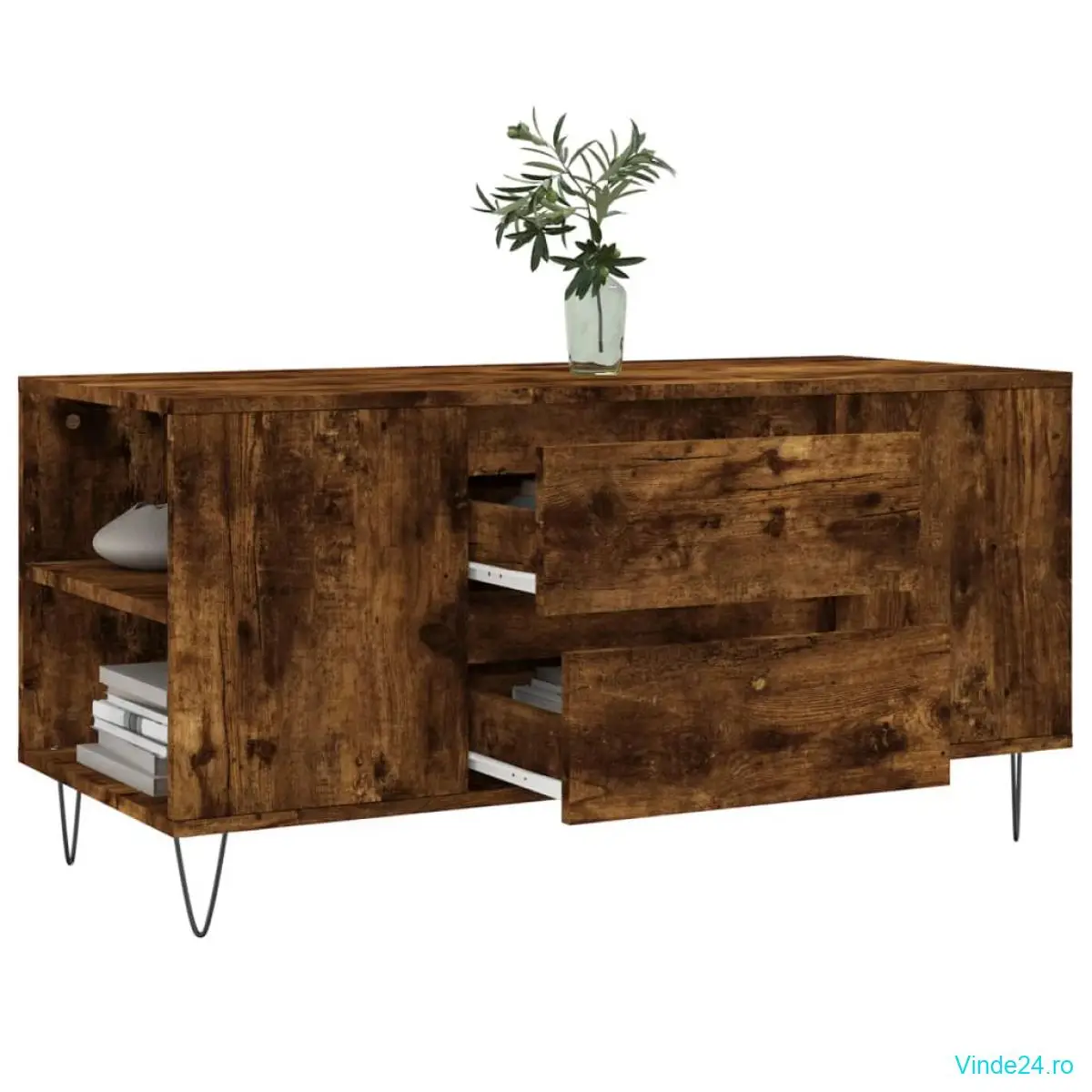 vidaXL Măsuță de cafea, stejar afumat, 102x44,5x50 cm, lemn prelucrat