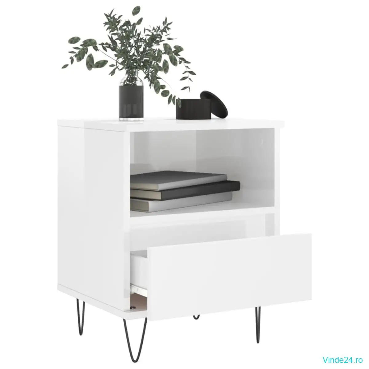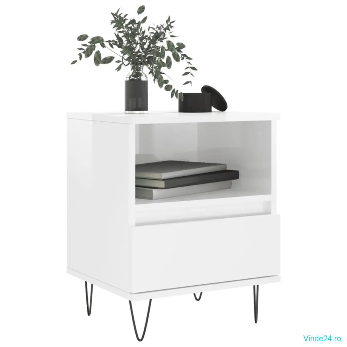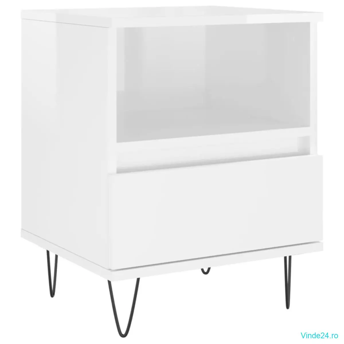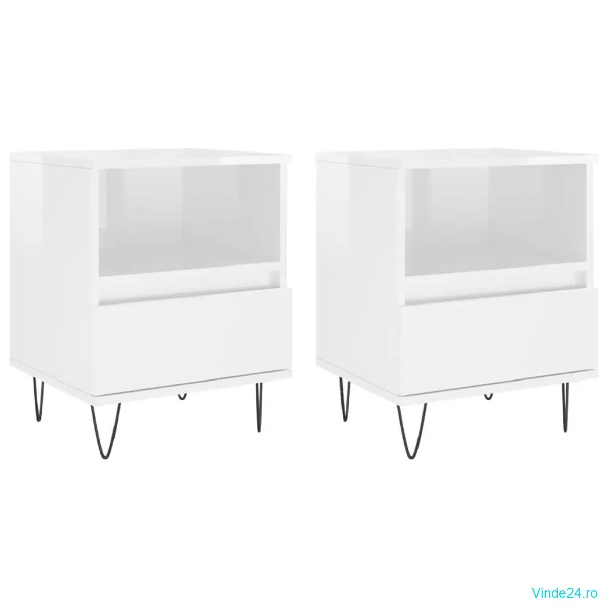 vidaXL Noptiere, 2 buc., alb extralucios, 40x35x50 cm, lemn compozit