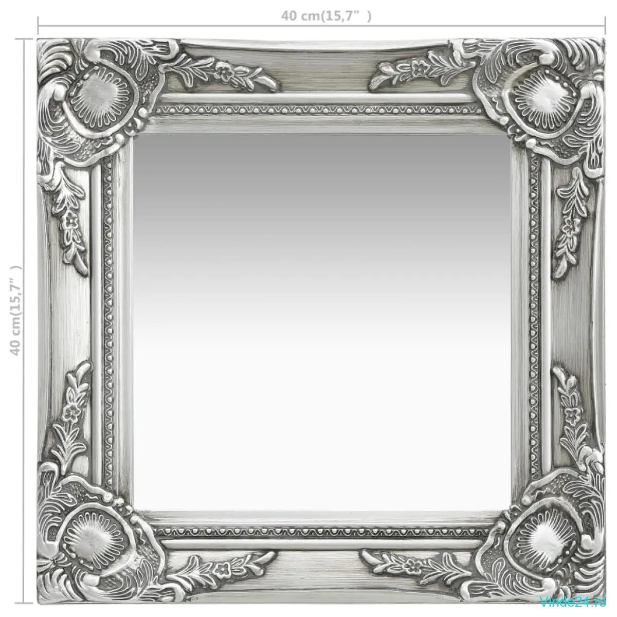 vidaXL Oglindă de perete în stil baroc, argintiu, 40 x 40 cm