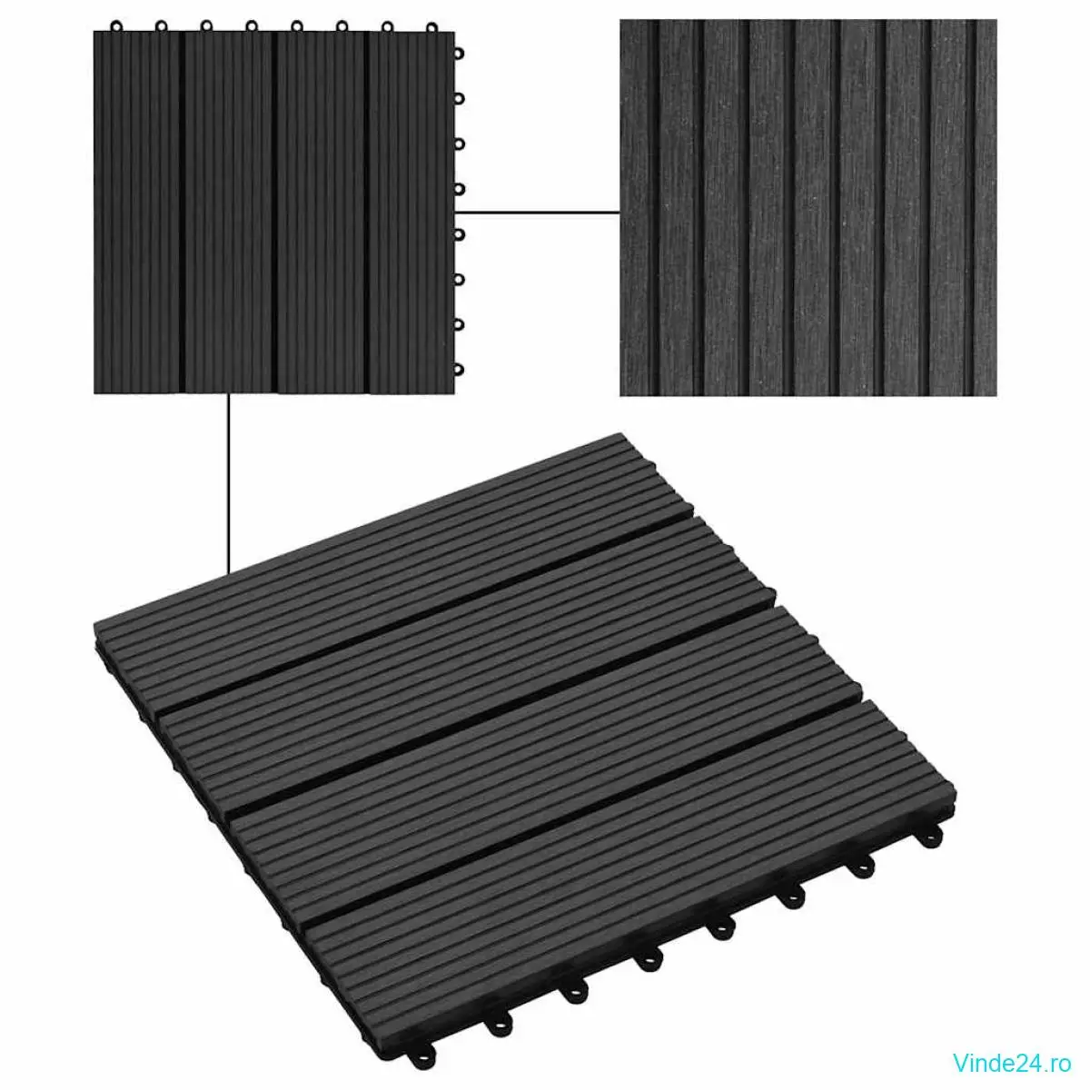 vidaXL Plăci de pardoseală, 22 buc., negru, 30 x 30 cm, WPC, 2 mp