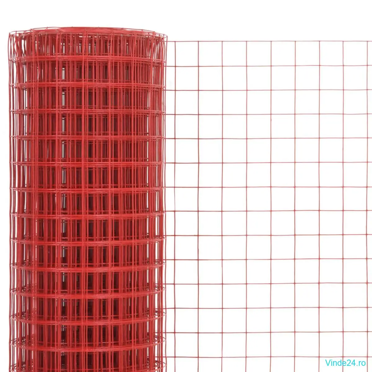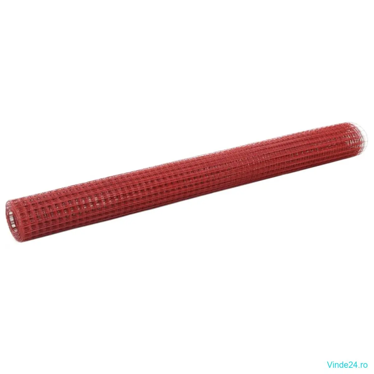 vidaXL Plasă de sârmă găini, roșu, 10 x 1,5 m, oțel cu înveliș PVC
