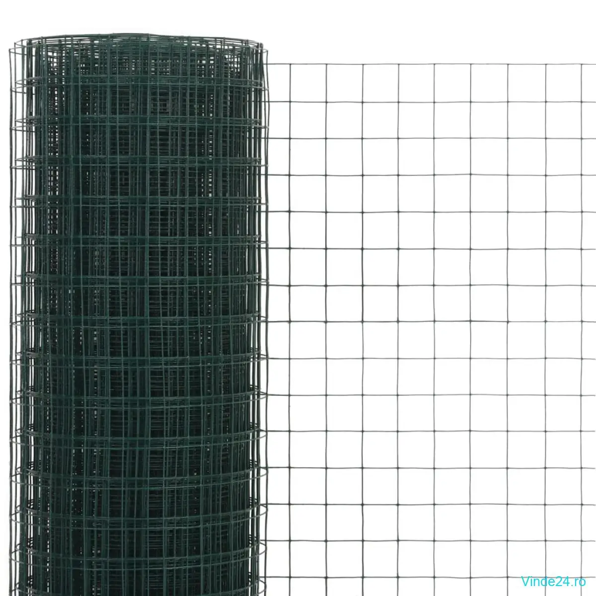 vidaXL Plasă de sârmă găini, verde, 10 x 0,5 m, oțel cu înveliș PVC
