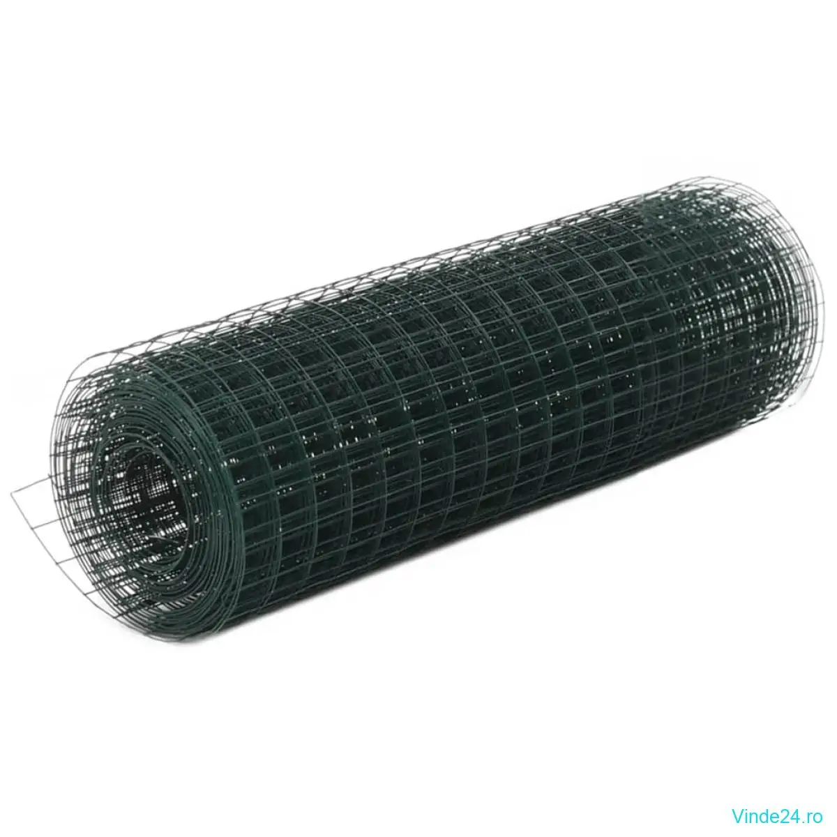 vidaXL Plasă de sârmă găini, verde, 10 x 0,5 m, oțel cu înveliș PVC
