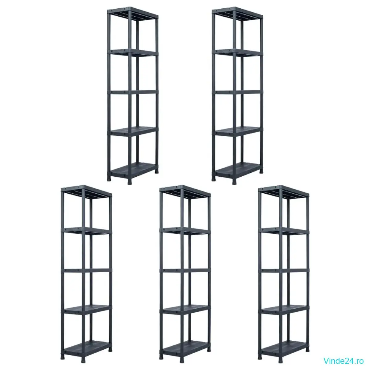 vidaXL Rafturi de depozitare 5 buc. negru 60x30x180 cm plastic 125 kg