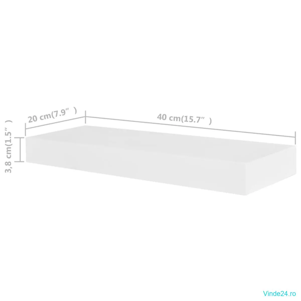 • Dimensiuni raft: 40 x 20 x 3,8 cm (l x ad. x î)