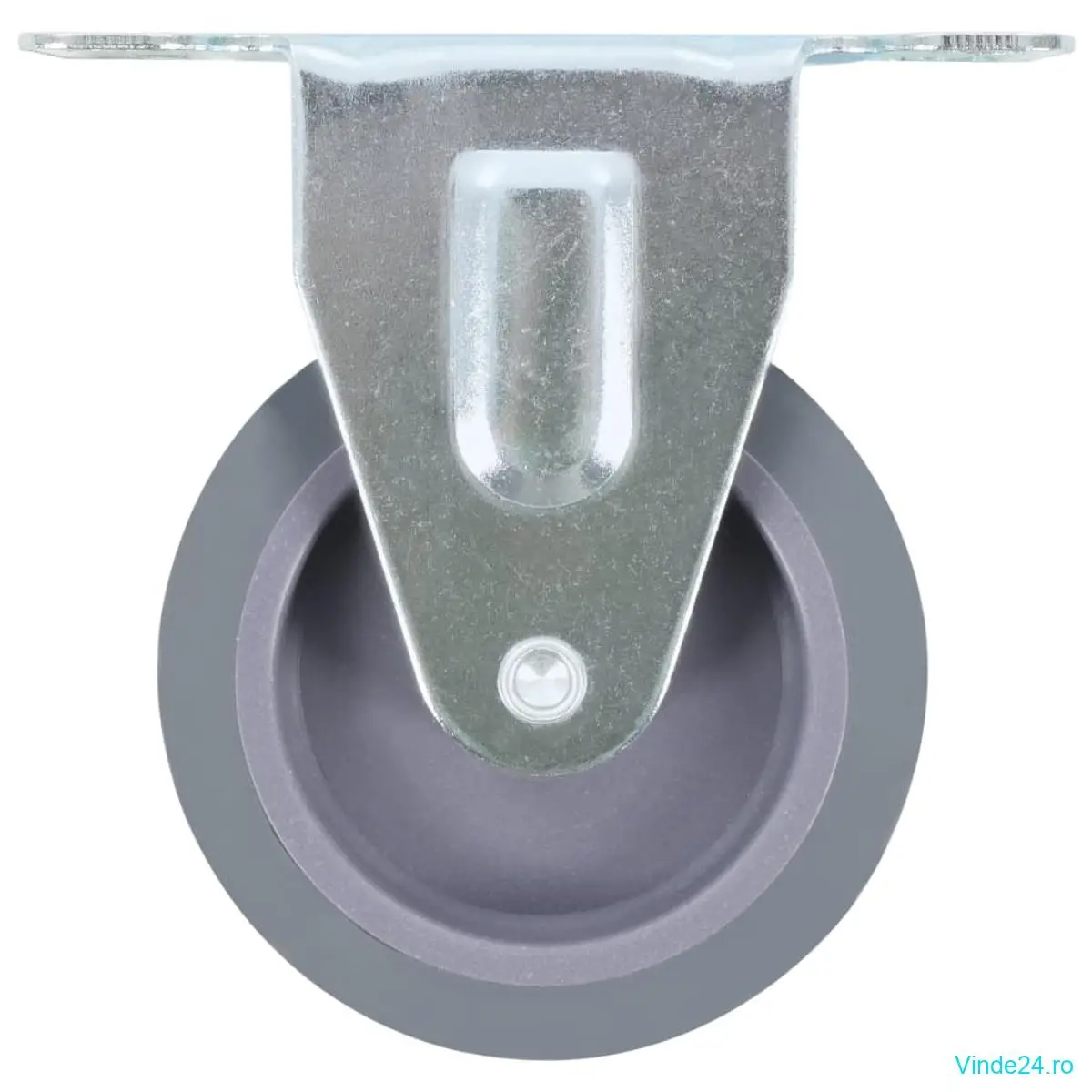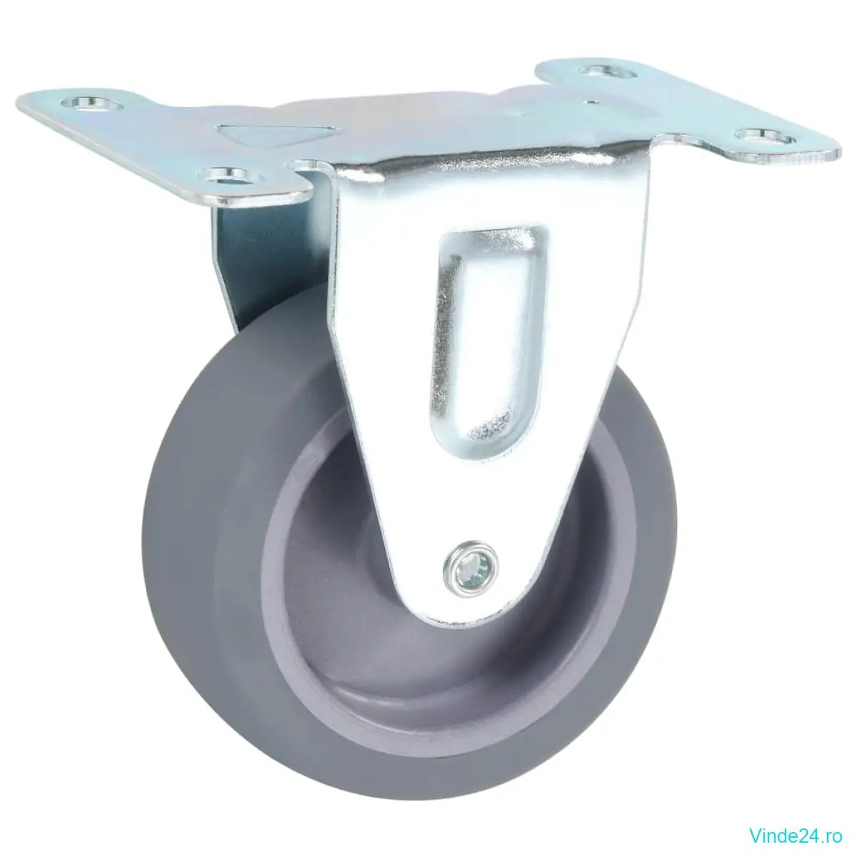 Aceste roți sunt fabricate din TPR (cauciuc termoplastic) care se remarcă printr-o bună rezistență la șocuri și vibrații, permițând roților să funcționeze lin și silențios. În plus, suprafețele lor moi protejează eficient podeaua împotriva zgârieturilor. Cadrul din fier zincat este foarte rezistent la rugină și adaugă un plus de robustețe și durabilitate roților. Fiecare roată poate suporta o greutate maximă de până la 45 kg.