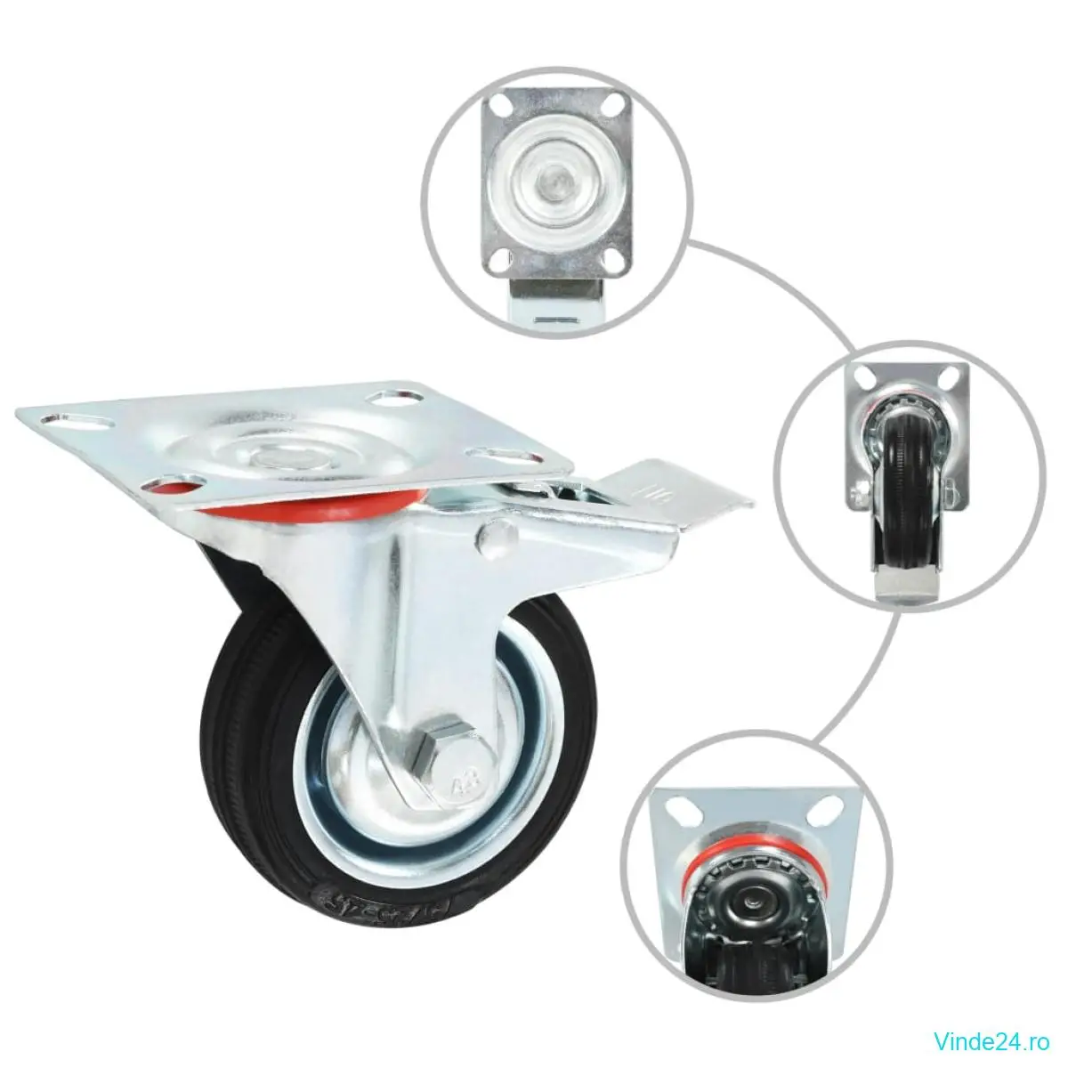 • Pachetul de livrare include 12 roți pivotante, jumătate cu sistem de frânare.