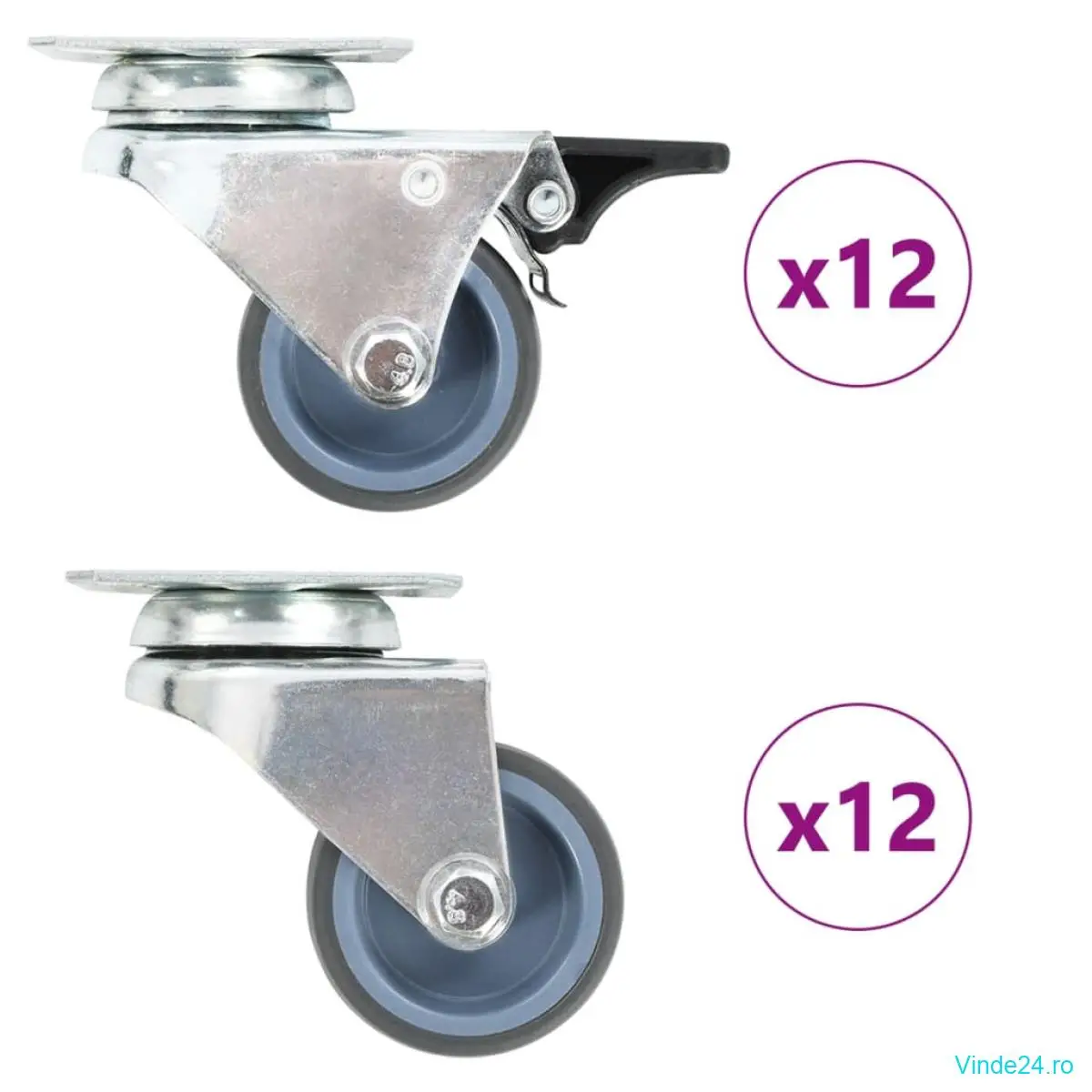 • Pachetul de livrare include 12 roți pivotante și 12 roți pivotante cu frâne