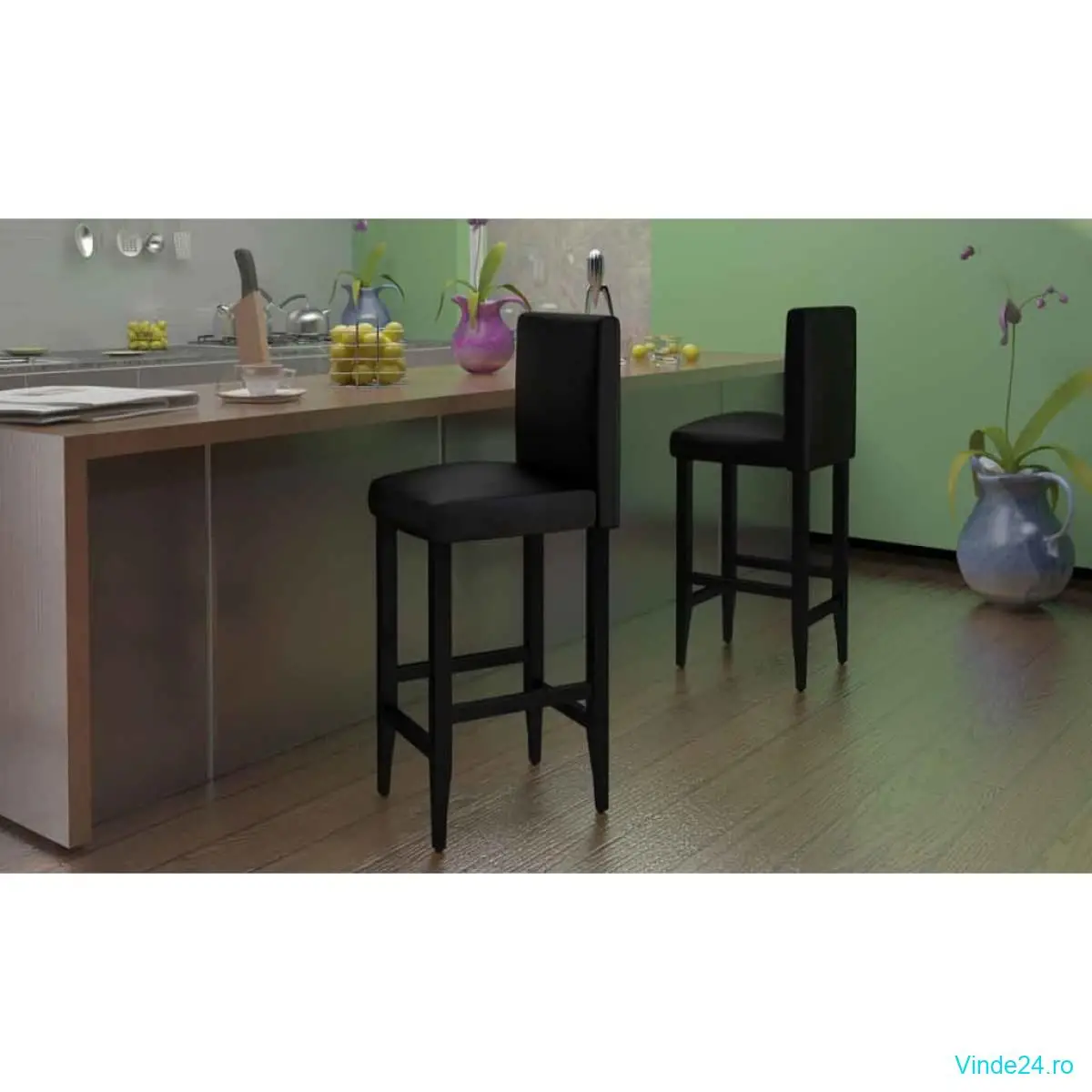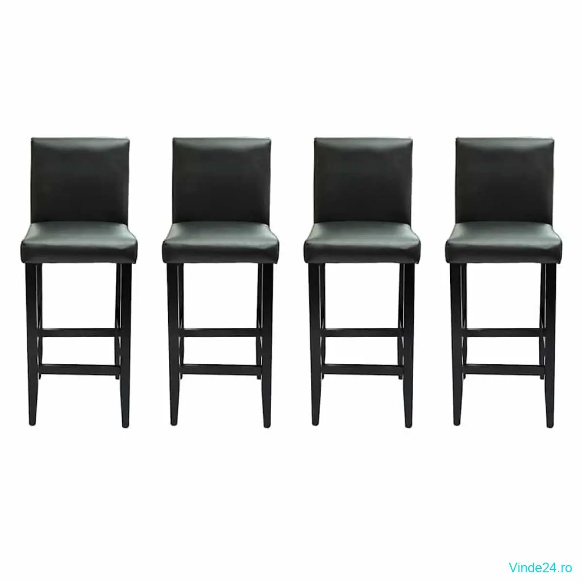 vidaXL Scaune de bar, 4 buc., negru, piele ecologică