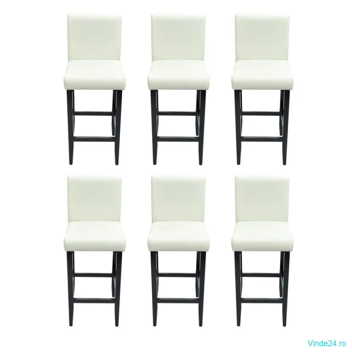 vidaXL Scaune de bar, 6 buc., alb, piele ecologică