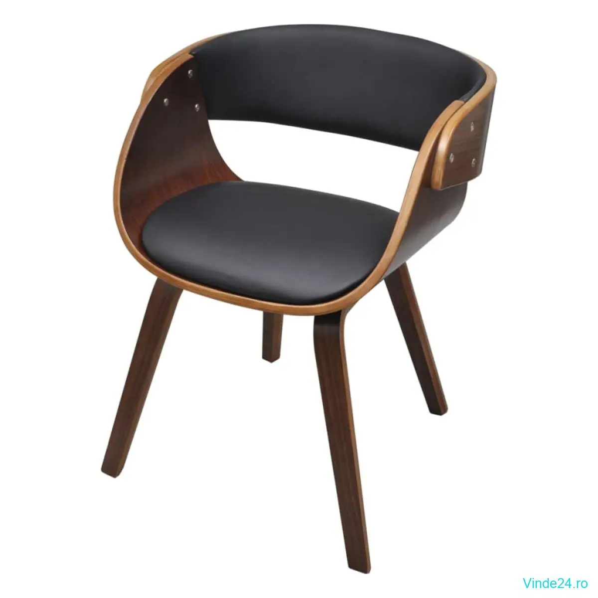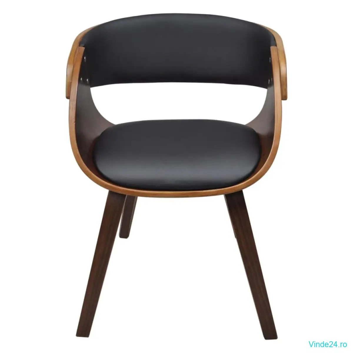 vidaXL Scaune de bucătărie 4 buc., maro, lemn curbat & piele ecologică
