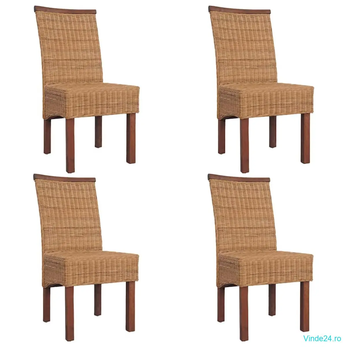 vidaXL Scaune de bucătărie, 4 buc., maro, ratan natural