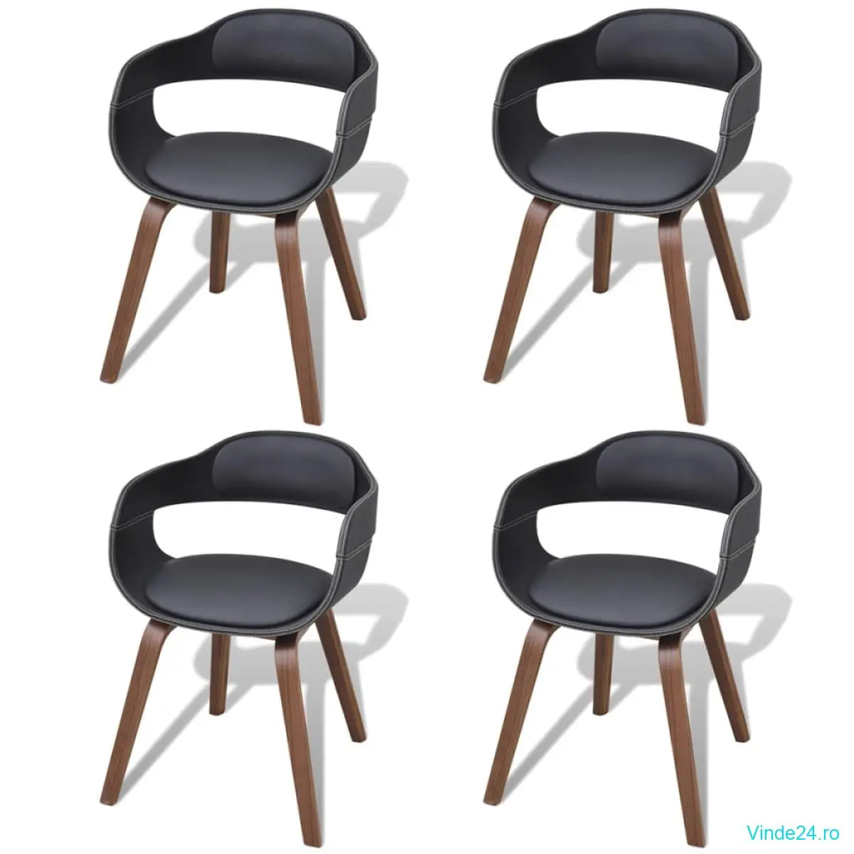 Acest set cu scaune de bucătărie, cu cotiere și tapițerie din piele artificială de calitate superioară, sunt plăcute din punct de vedere estetic și au un design ergonomic, aducând un plus de stil și confort sufrageriei dvs.