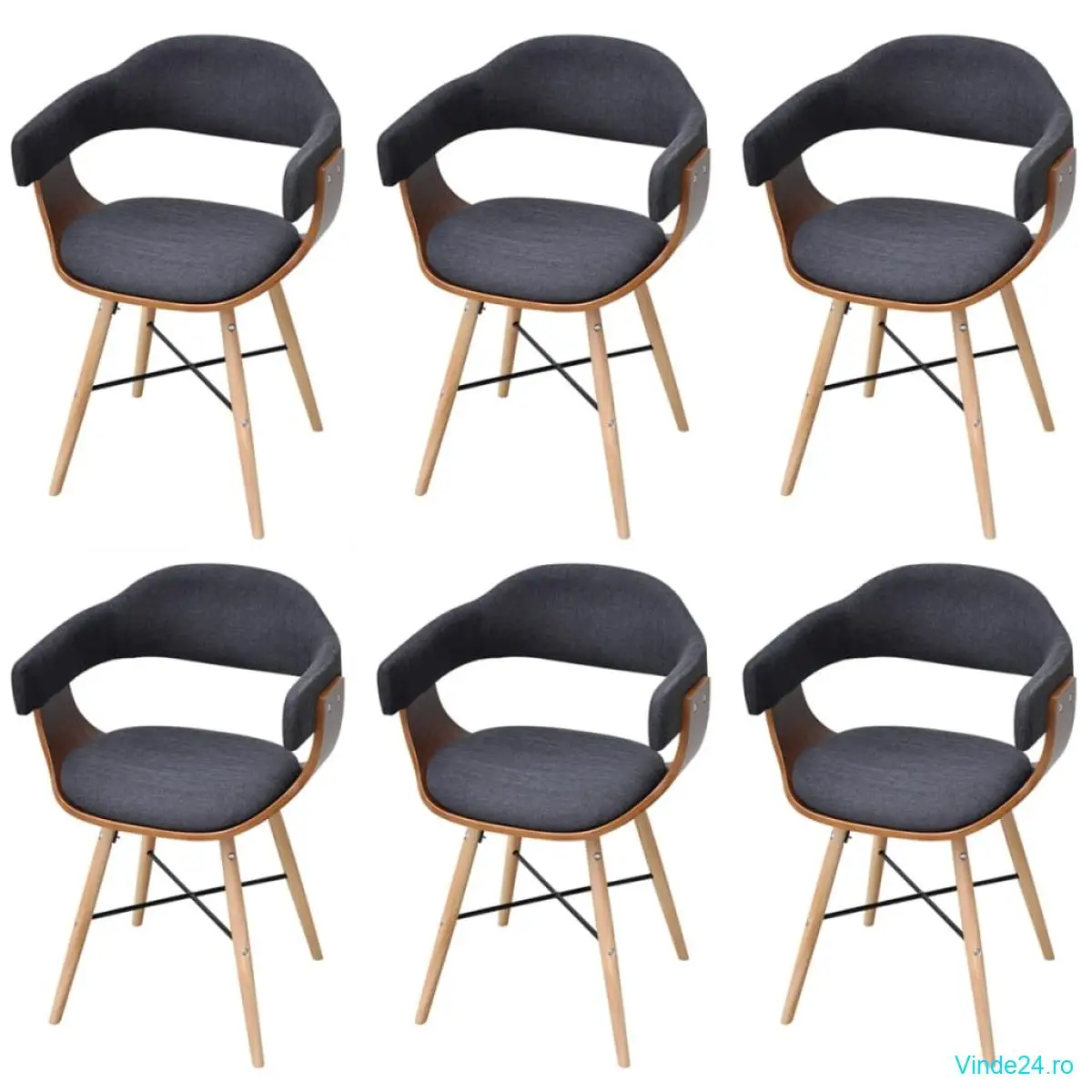 Acest set de 6 scaune de bucătărie cu cotiere și tapițerie textilă luxoasă de înaltă calitate, nu este doar plăcut din punct de vedere estetic, ci are și un design ergonomic și va aduce un plus de stil și confort sufrageriei dvs.
