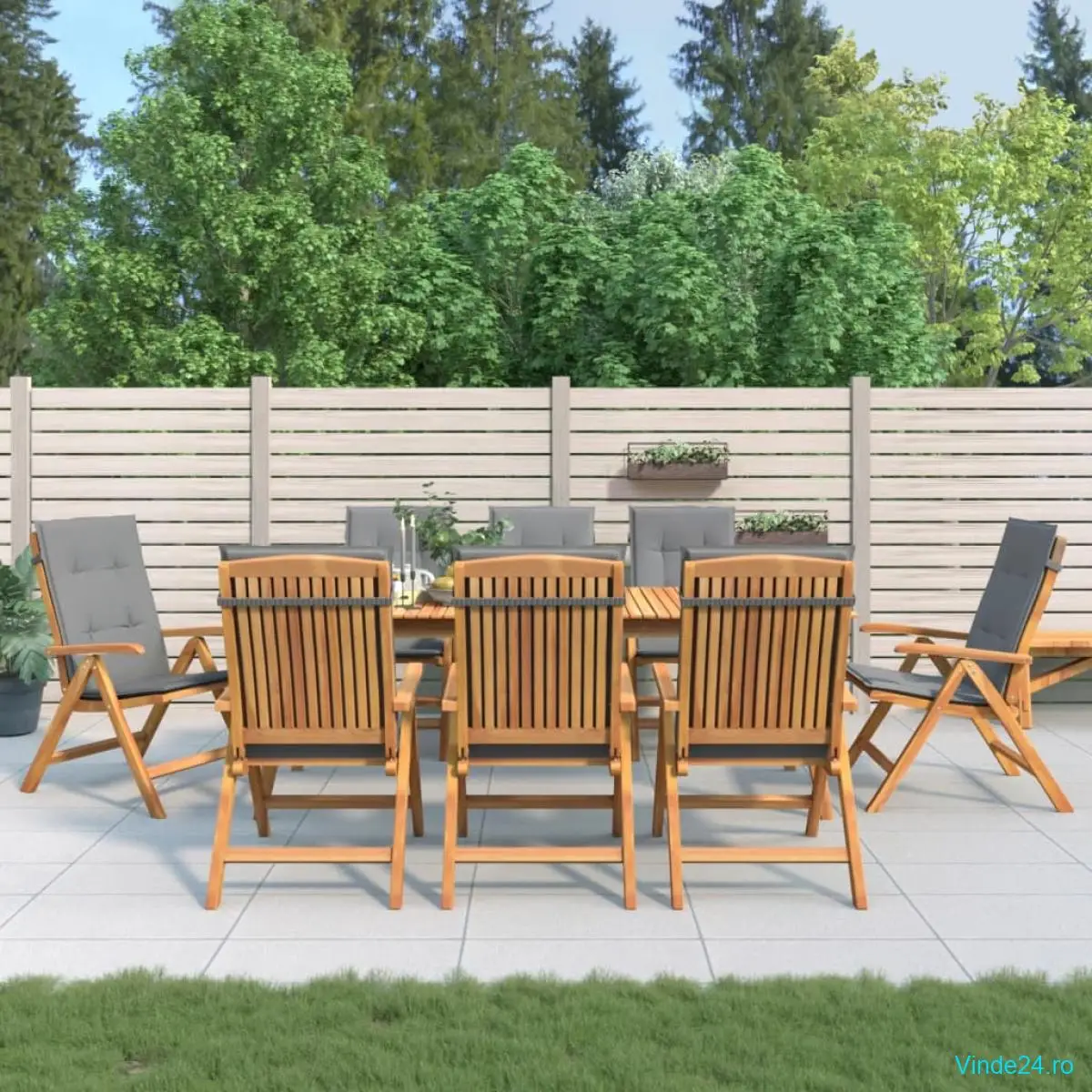 • Lemn masiv de tec: Lemnul masiv de tec este un material natural frumos. A fost uscat natural și în cuptor și apoi șlefuit fin pentru a-i da un aspect foarte neted. Lemnul de tec este cunoscut pentru robustețea sa excepțională și rezistența la intemperii.