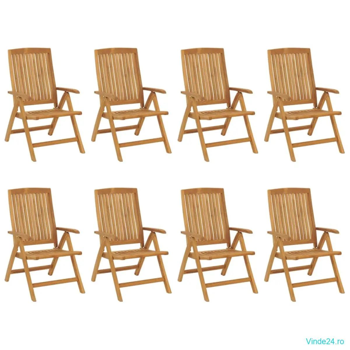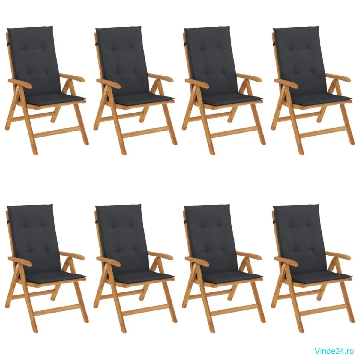 vidaXL Scaune de grădină rabatabile cu perne, 8 buc. lemn masiv de tec
