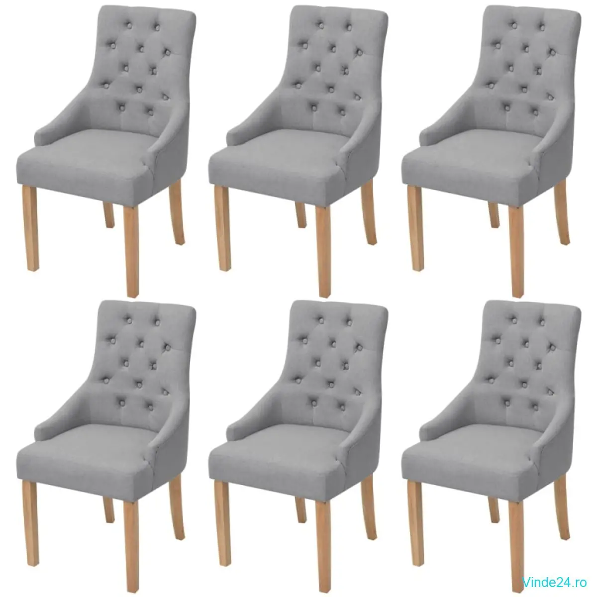 vidaXL Scaune de sufragerie, 6 buc., gri deschis, material textil
