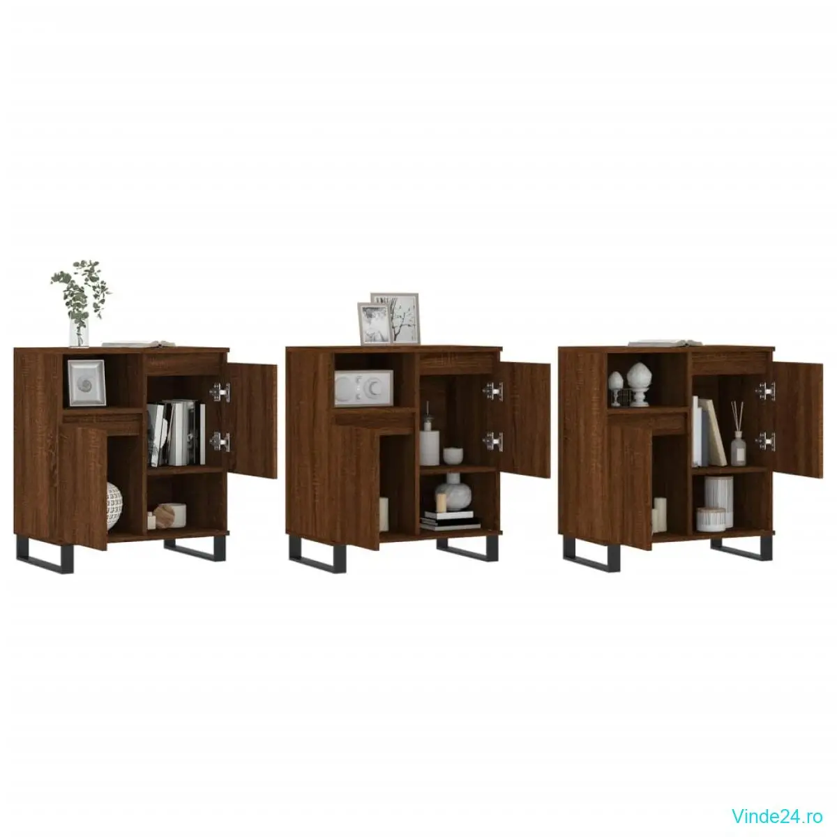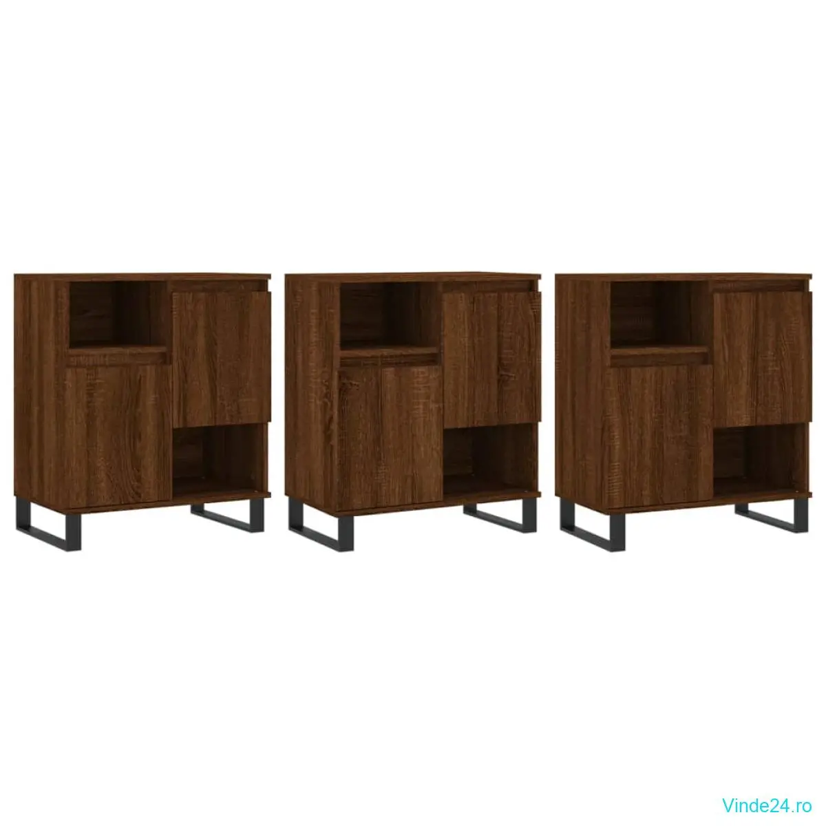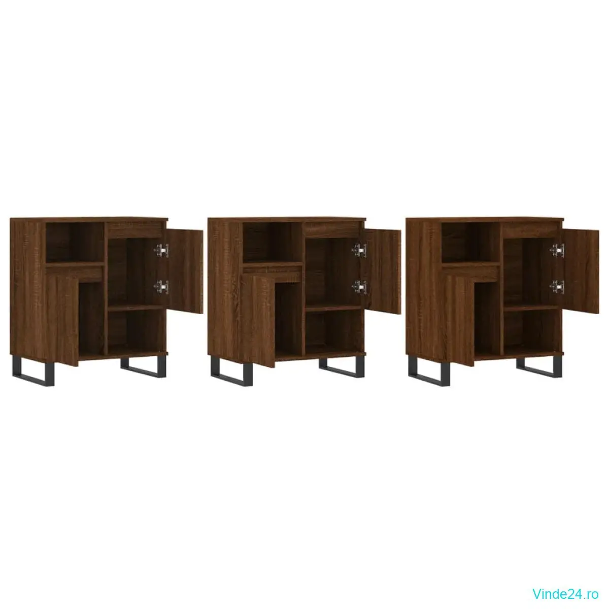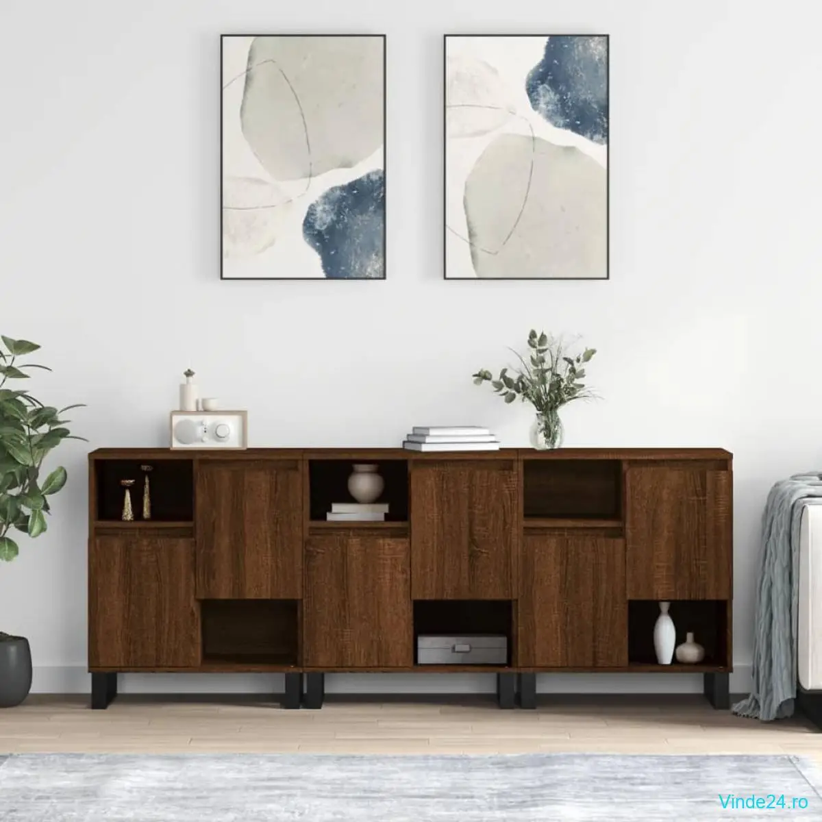 vidaXL Servantă, 3 buc., stejar maro, lemn prelucrat