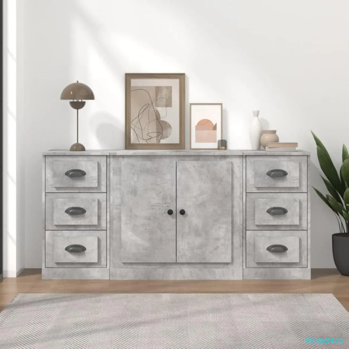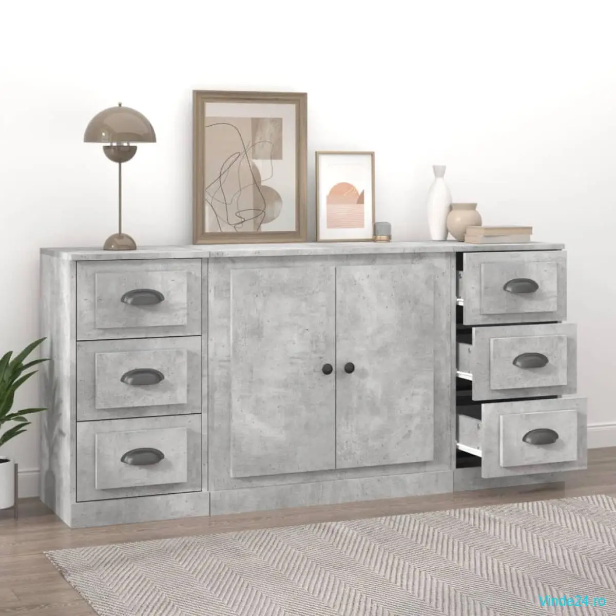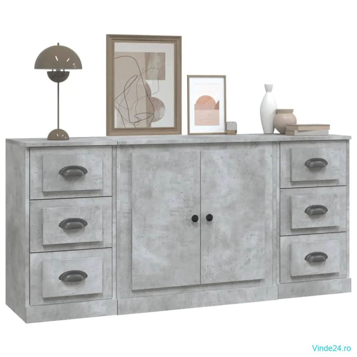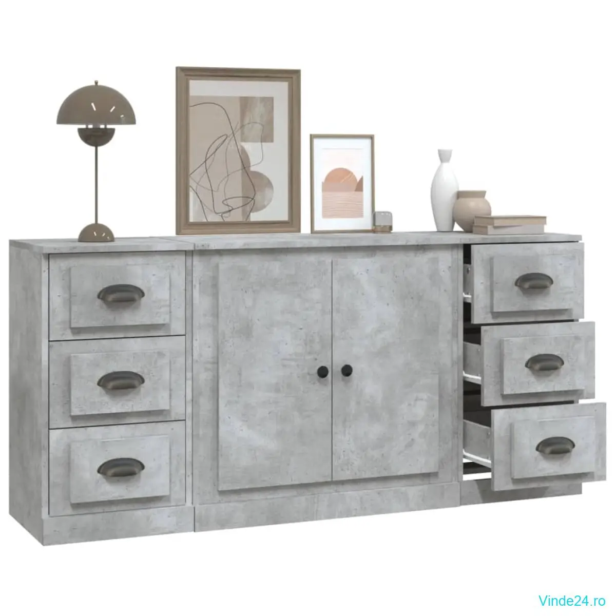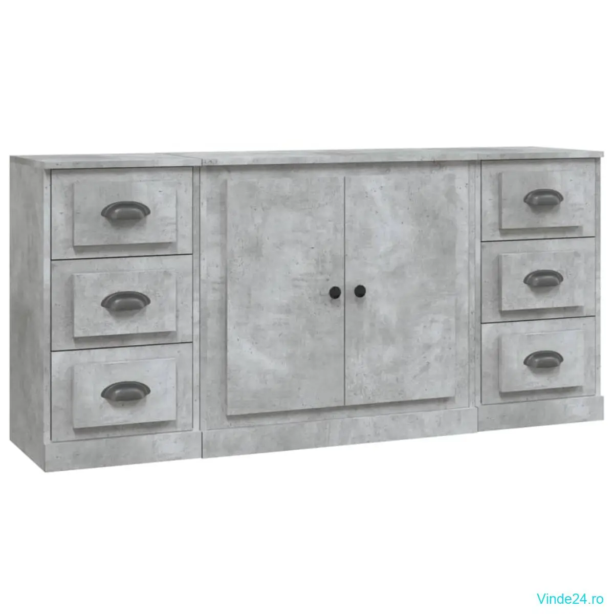 vidaXL Servante, 3 piese, gri beton, lemn prelucrat