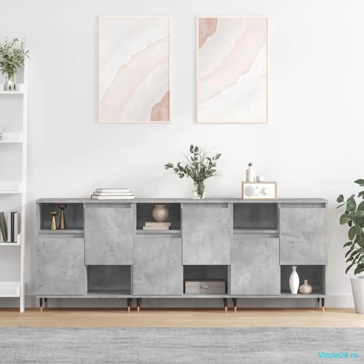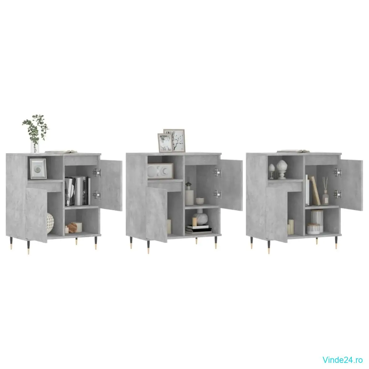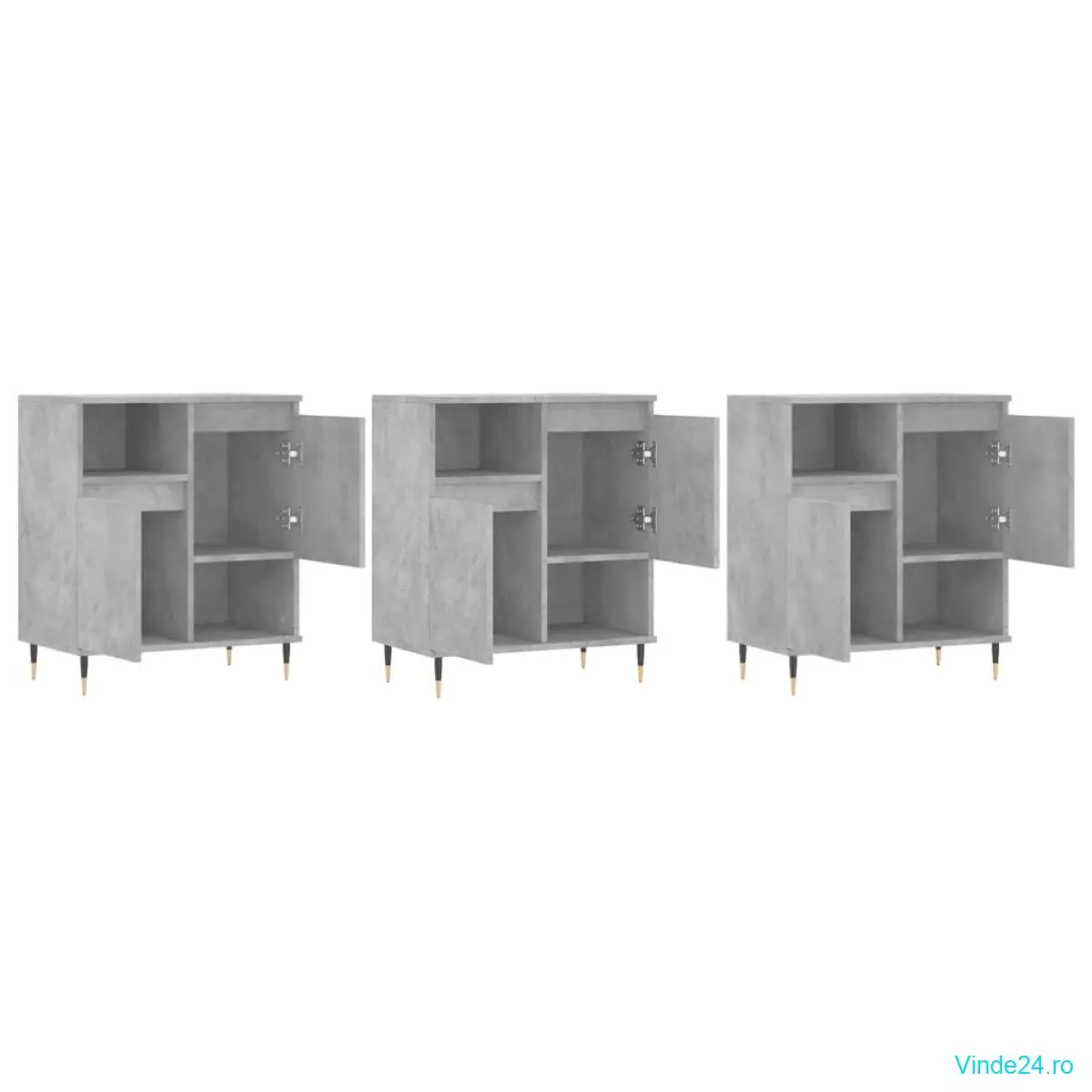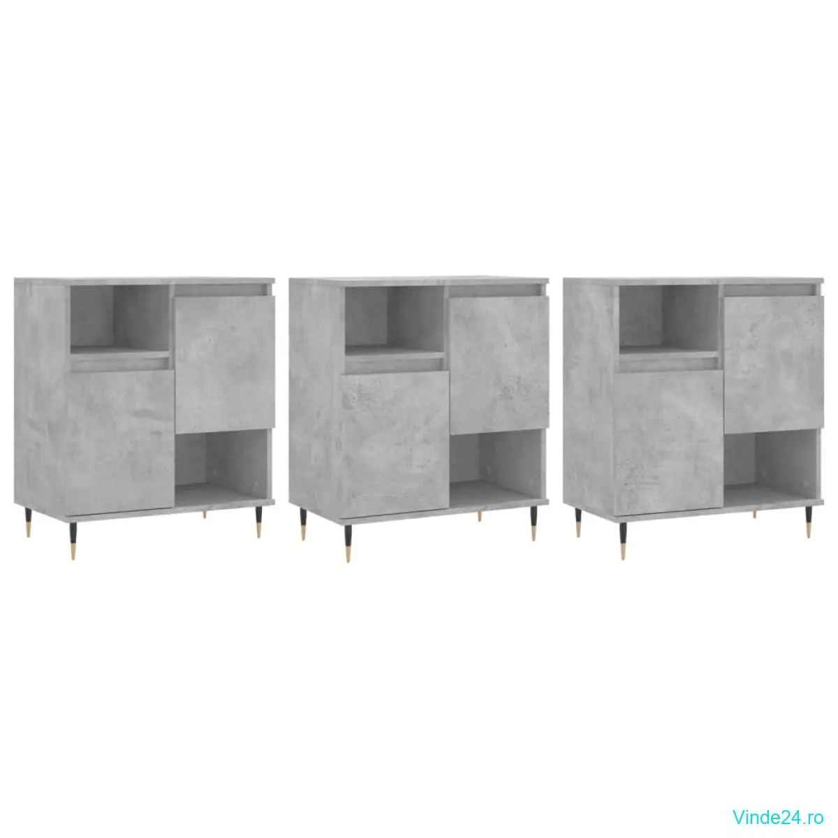 vidaXL Servante, 3 piese, gri beton, lemn prelucrat