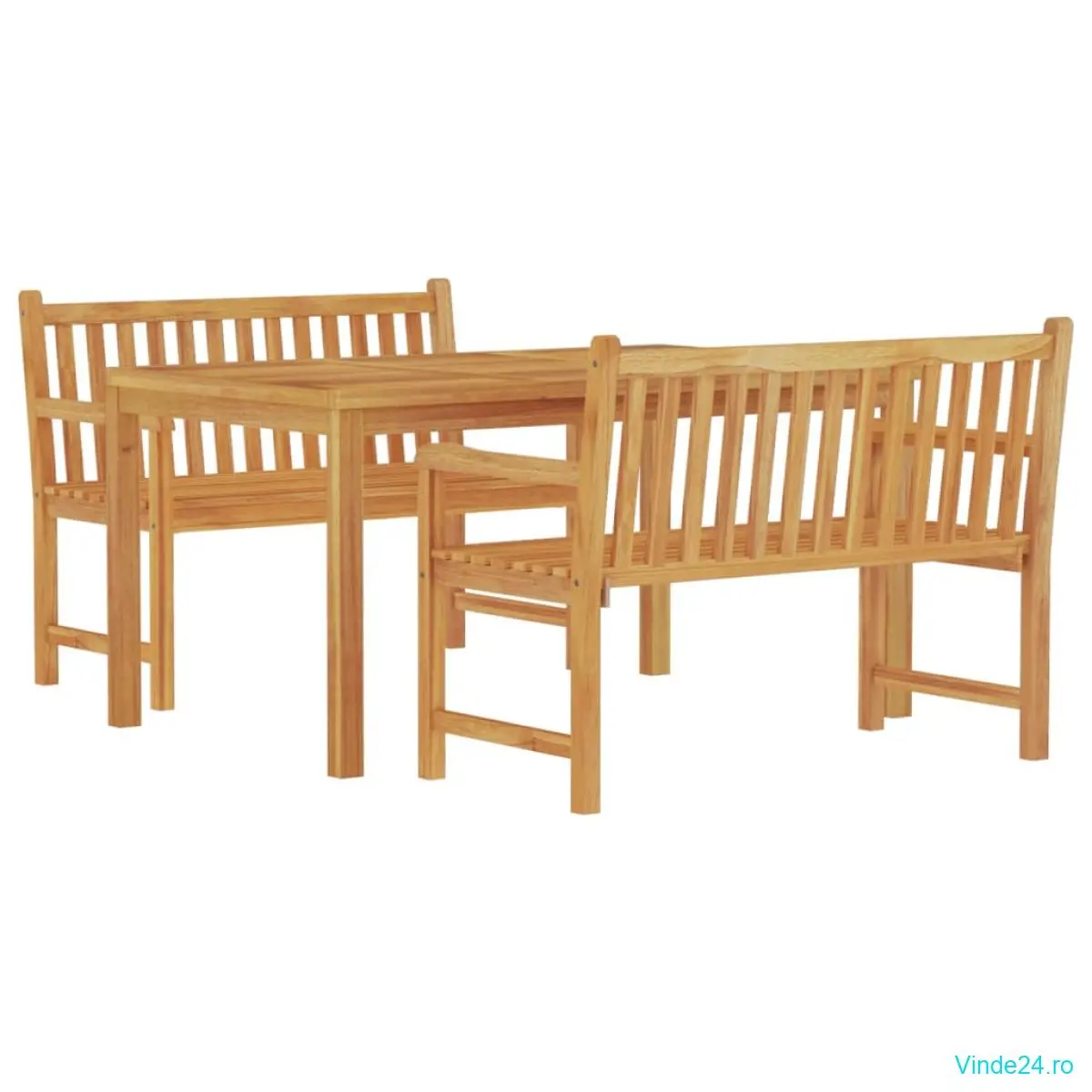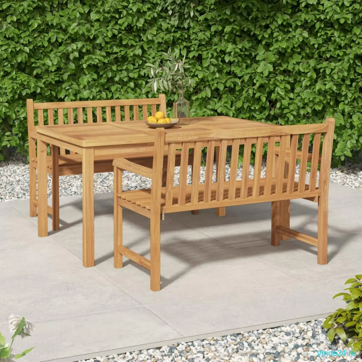 Acest set mobilier de grădină, din lemn, cu un design elegant și contemporan, va fi o alegere excelentă pentru a lua masa sau a vă relaxa în grădină.