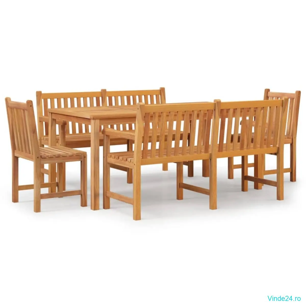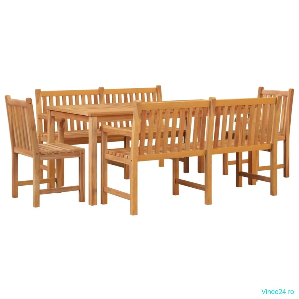 Acest set mobilier de grădină, din lemn, cu un design elegant și contemporan, va fi o alegere excelentă pentru a lua masa sau a vă relaxa în grădină.
