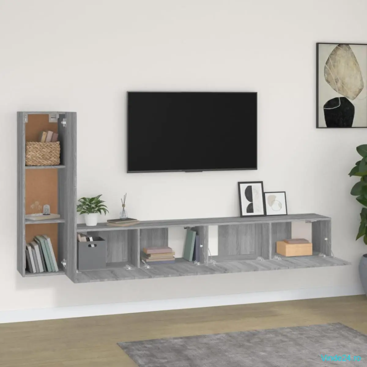 vidaXL Set dulap TV, 3 piese, gri sonoma, lemn prelucrat