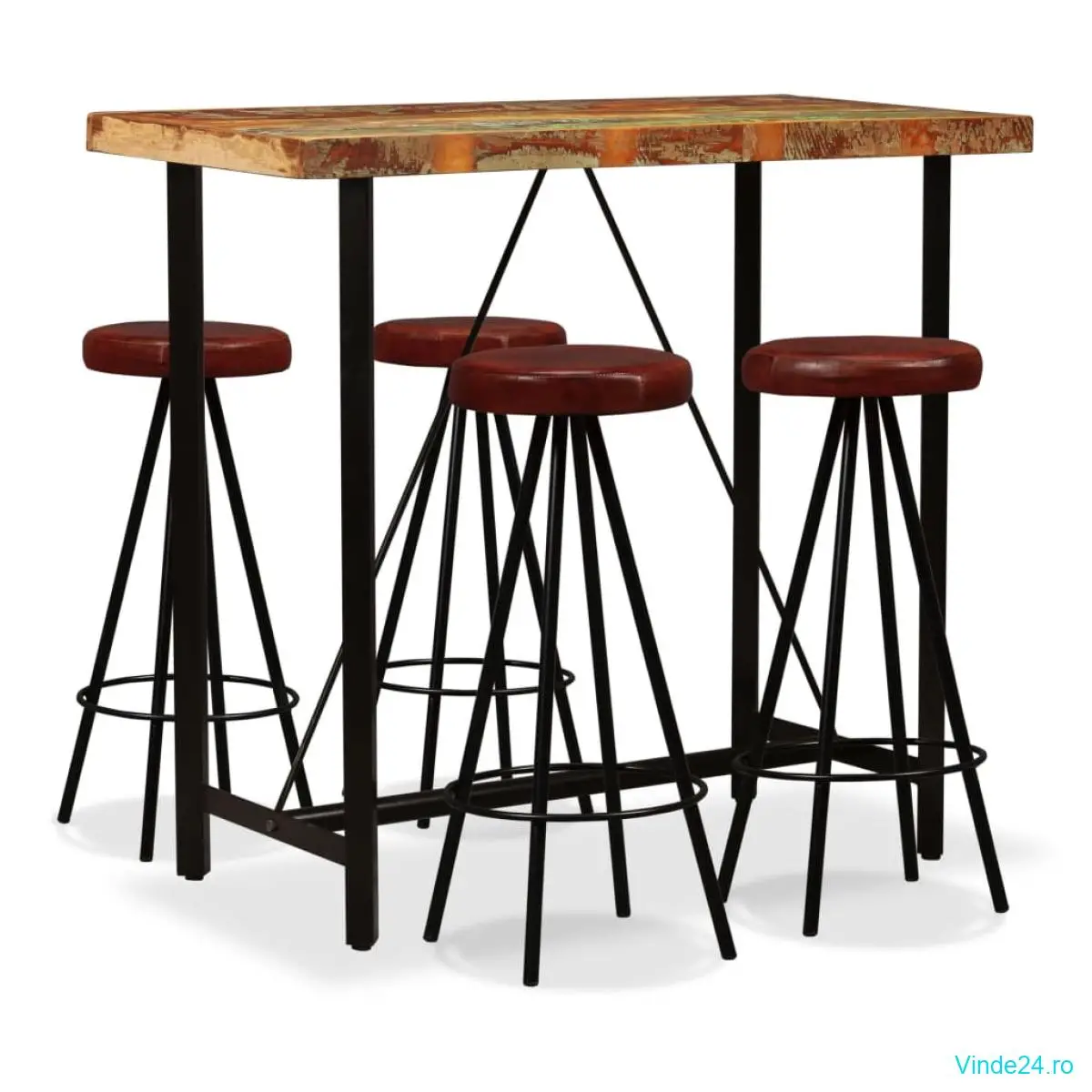 vidaXL Set mobilier bar, 5 piese lemn masiv reciclat și piele naturală