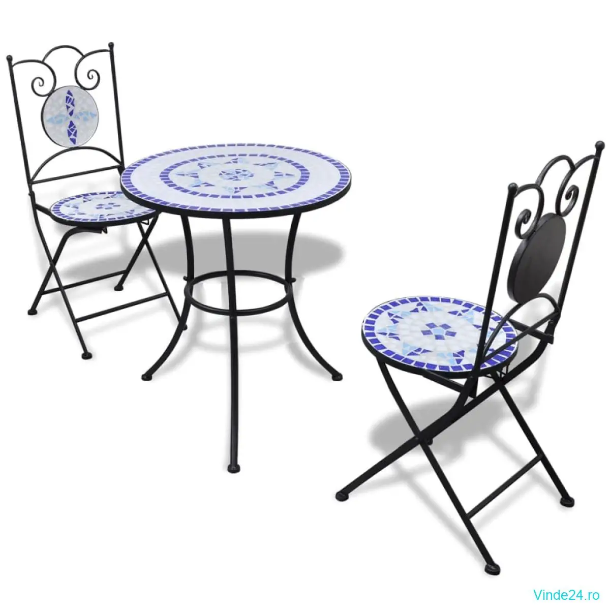 vidaXL Set mobilier bistro, 3 piese, albastru/alb, plăci ceramice