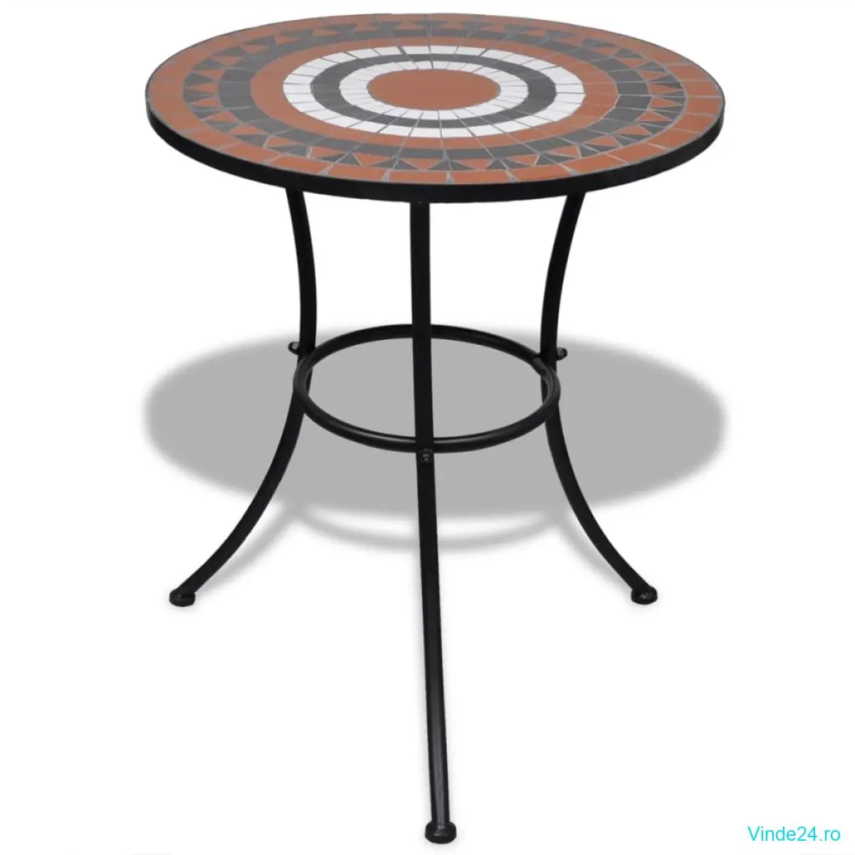 vidaXL Set mobilier bistro, 3 piese, teracotă/alb, plăci ceramice