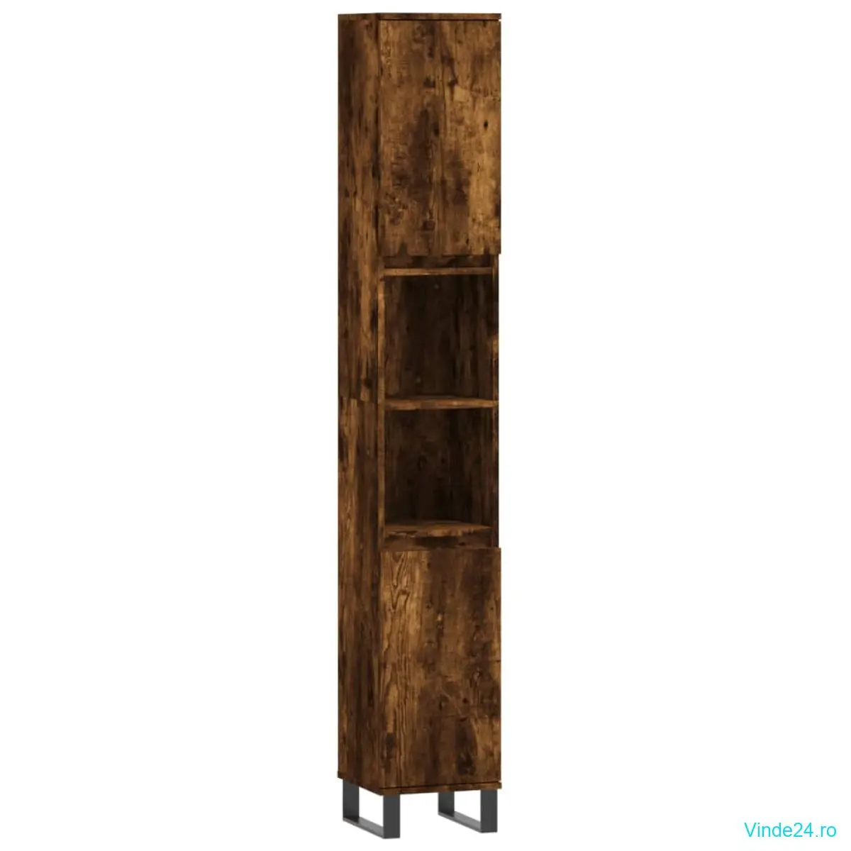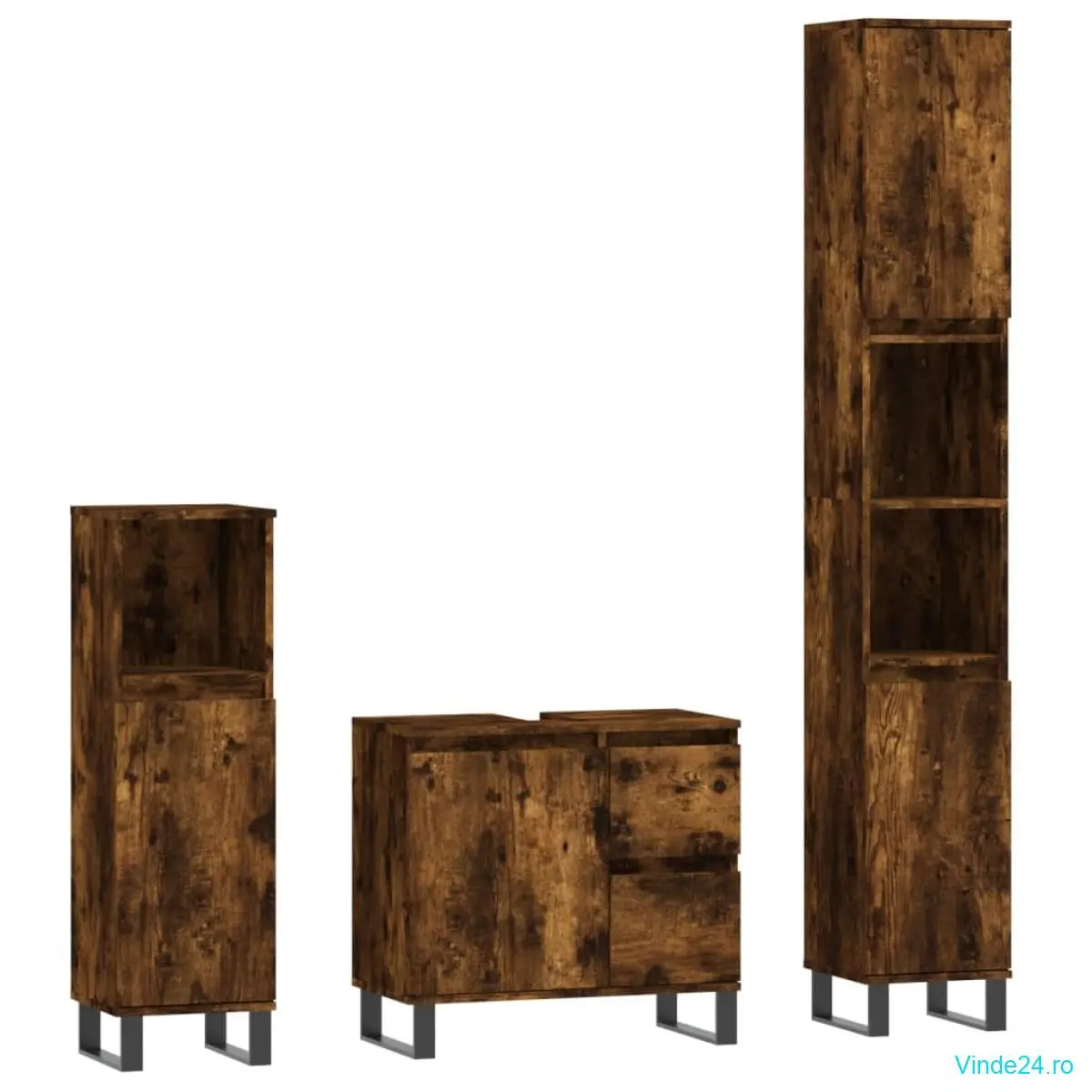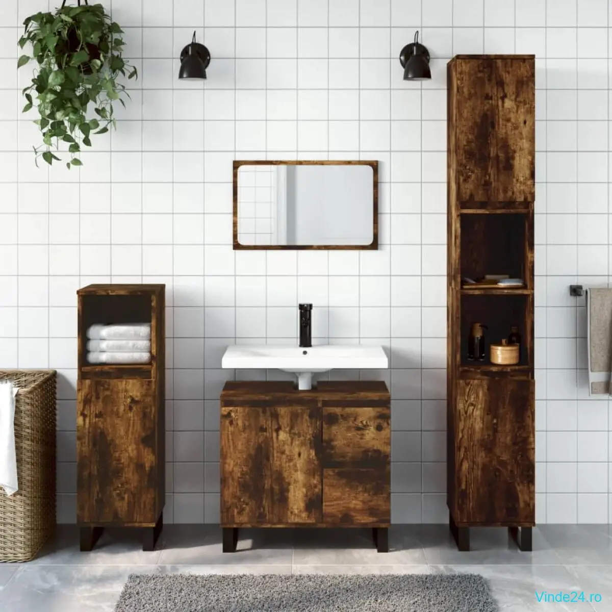vidaXL Set mobilier de baie, 3 piese, stejar fumuriu, lemn prelucrat