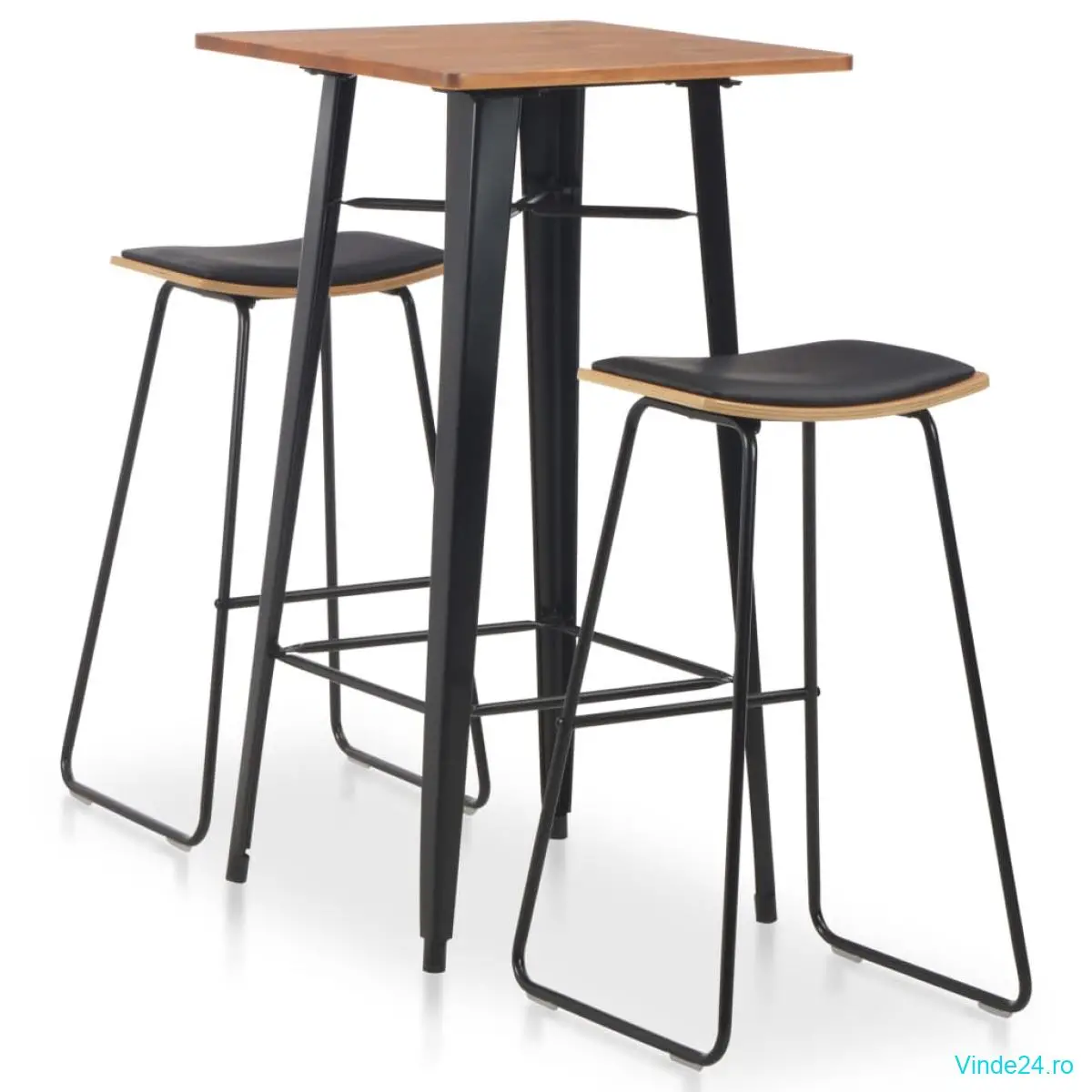 vidaXL Set mobilier de bar, 3 piese, negru, oțel
